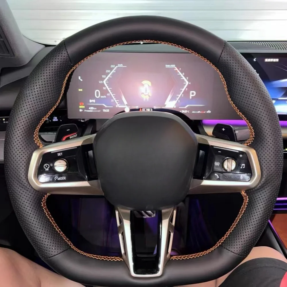 Customization Hand Sewing Genuine Leather Non-Slip Black Car Steering Wheel Cover Accessories DIY Fo...