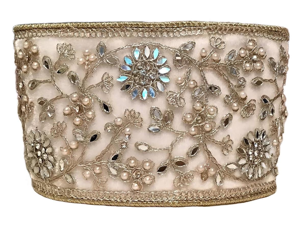 "RETAIL PRICE: $99 Per Roll LUXE Designer Ribbon - 4\" X 5yds Ribbon, Gold Crystal Gem Cri...