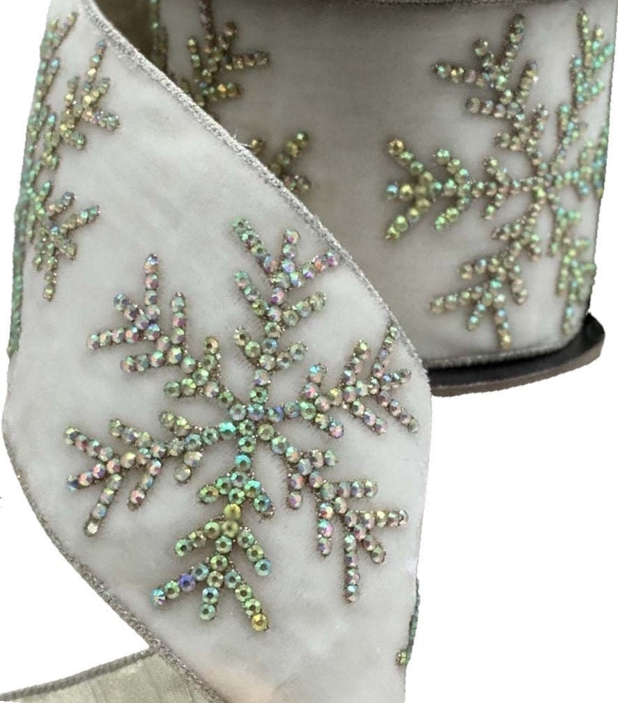 "RETAIL PRICE: $96 Per Roll LUXE Designer Ribbon - 4\" X 5yds Velvet, White Velvet w/Iride...