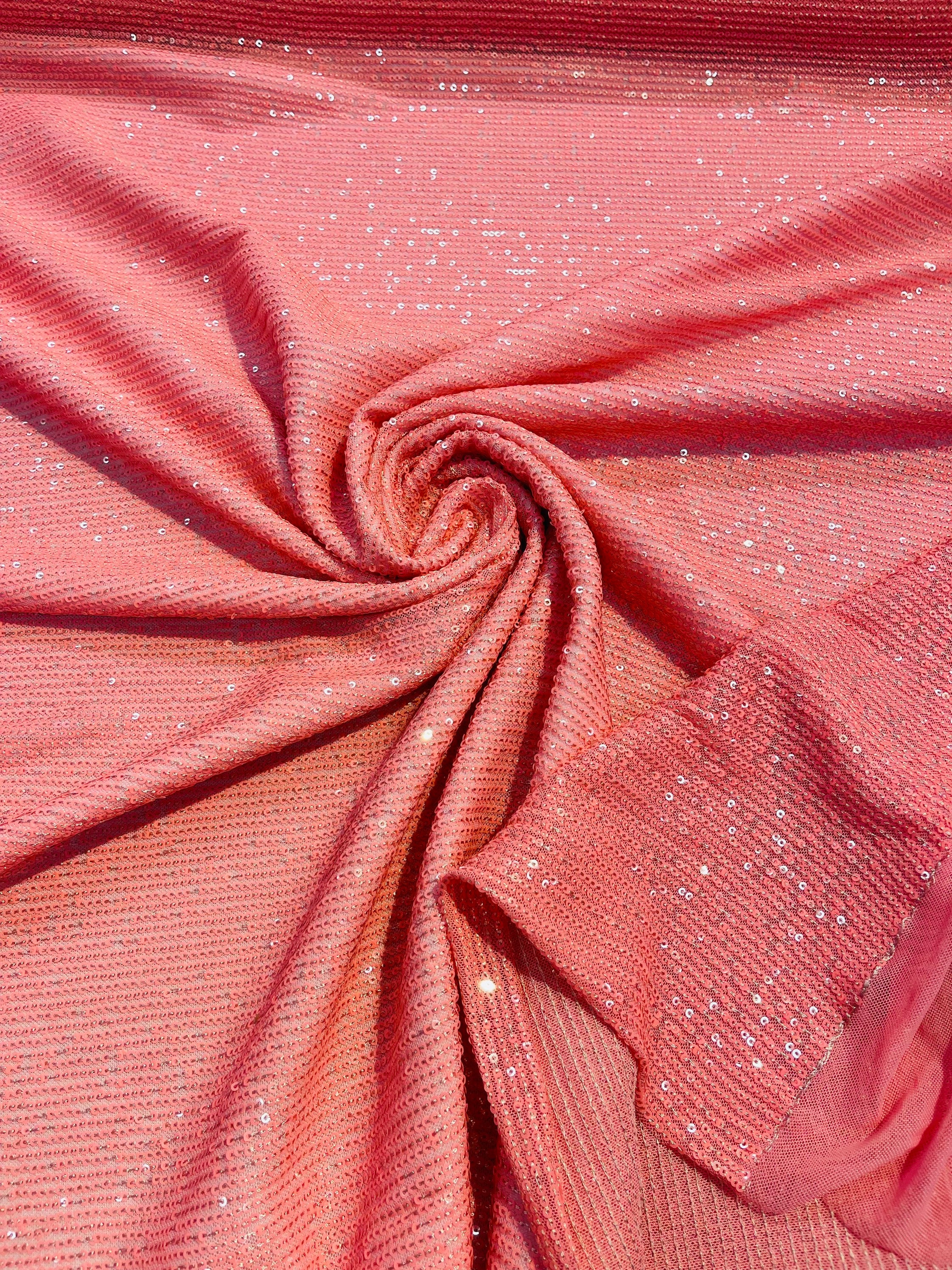 Coral Iridescent Mille Striped Stretch Sequins | by the yard | Lace...