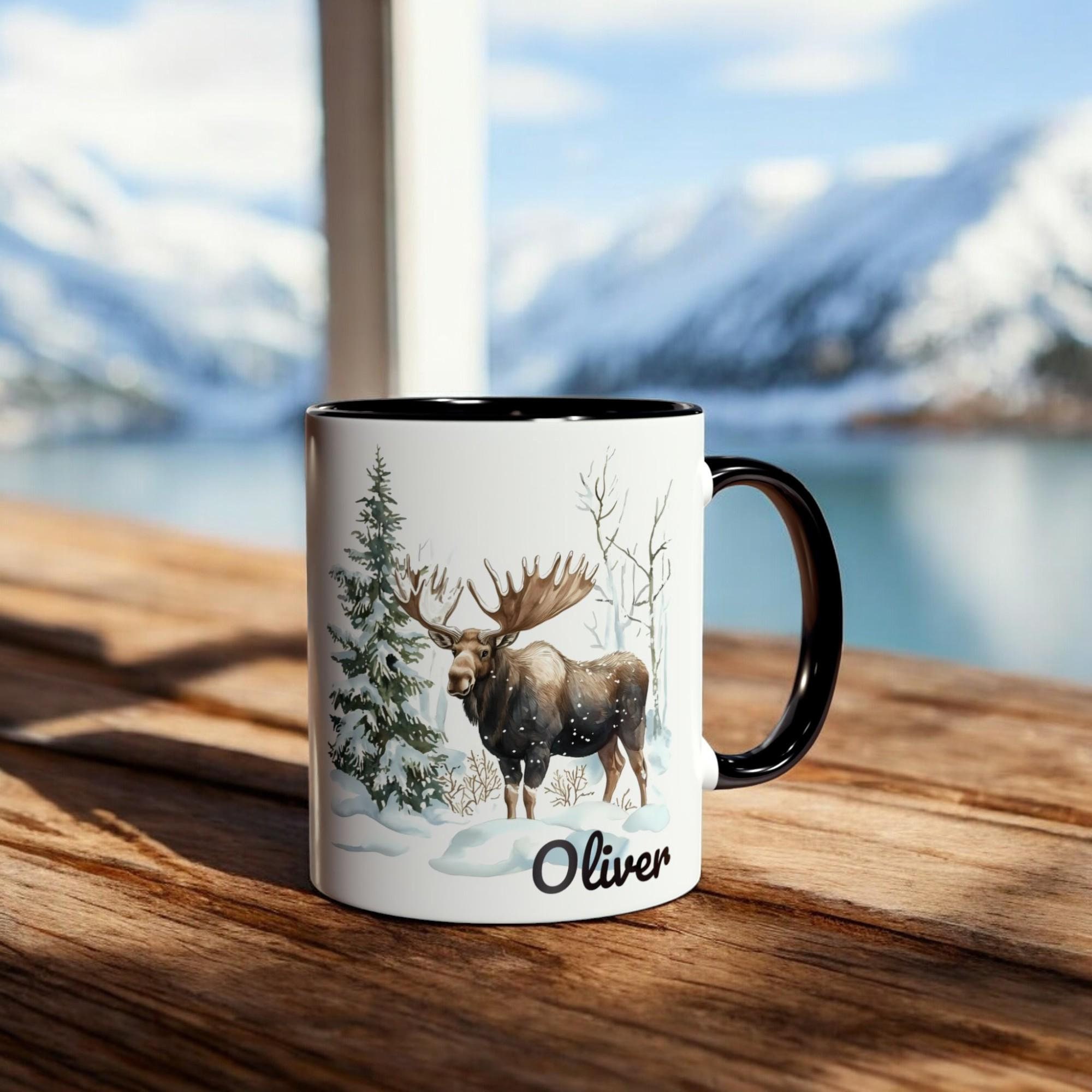 Personalized Moose Mug, Ceramic Winter Coffee Mug 11oz, Custom Name...