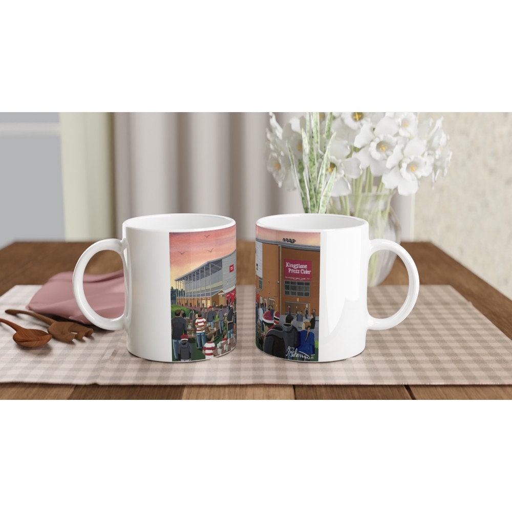 Gloucester. This is a unique rugby club stadium 11oz ceramic mug. My artworks are a celebration of t...