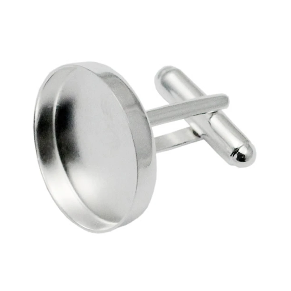 925 Sterling Silver French Cufflink Tray with 16/20mm Round Cabochon Setting DIY Cuff Link Blank Fin...