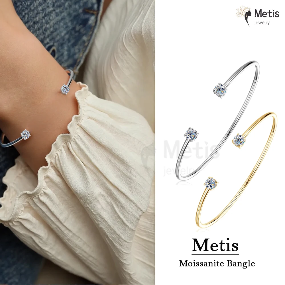Metis 5mm 0.5CT D VVS1 Moissanite Bangle Cuff Real 925 Sterling Silver Bracelet for Women Hand Openi...