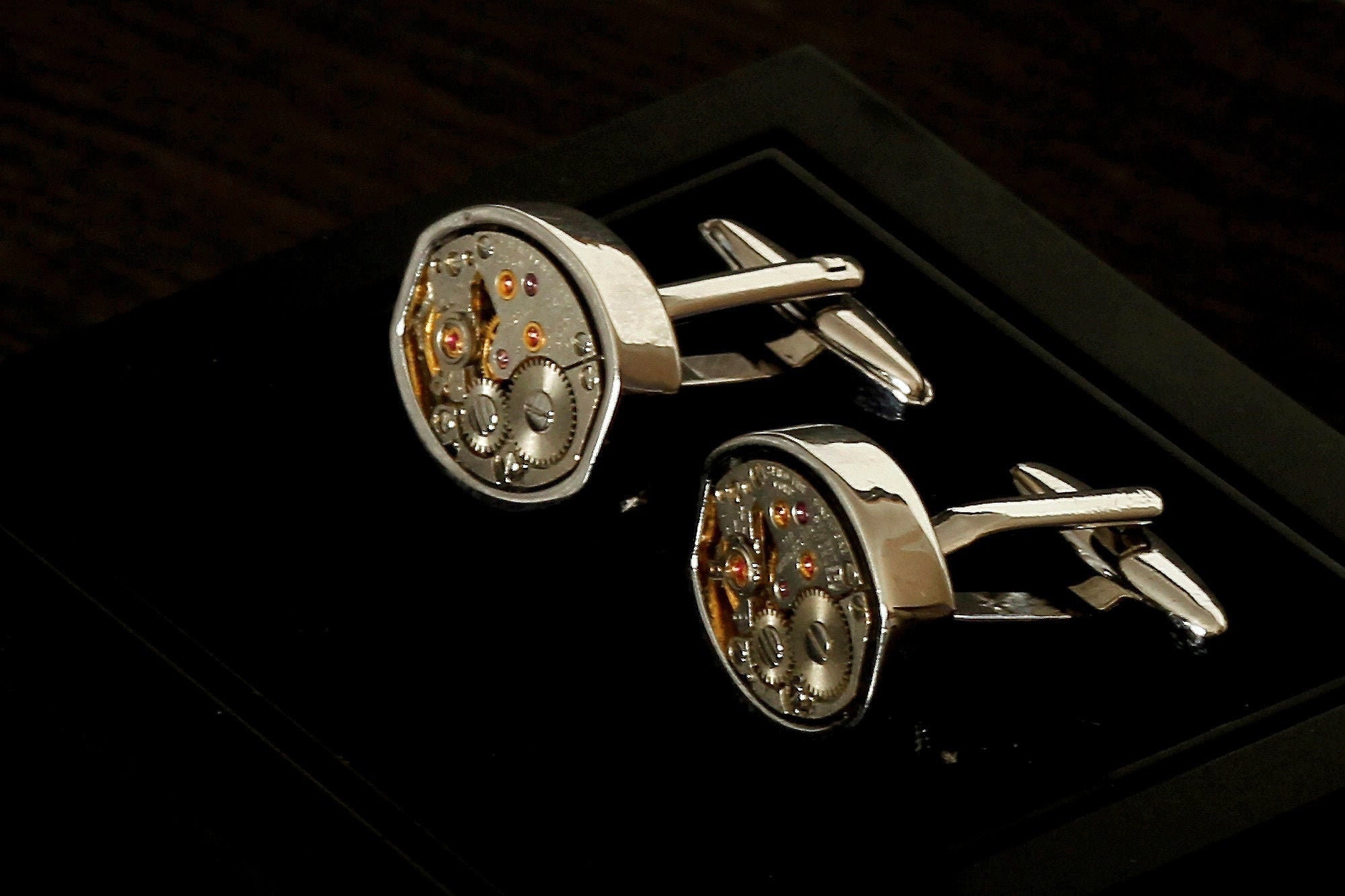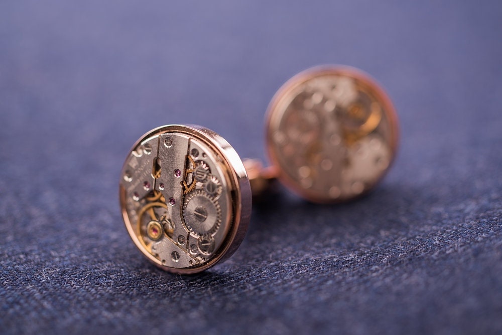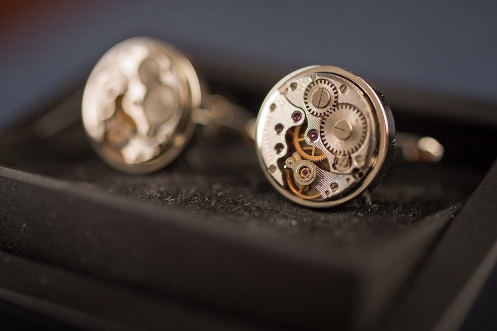 Real watch cufflinks, unique steampunk gift, vintage real watch mov...