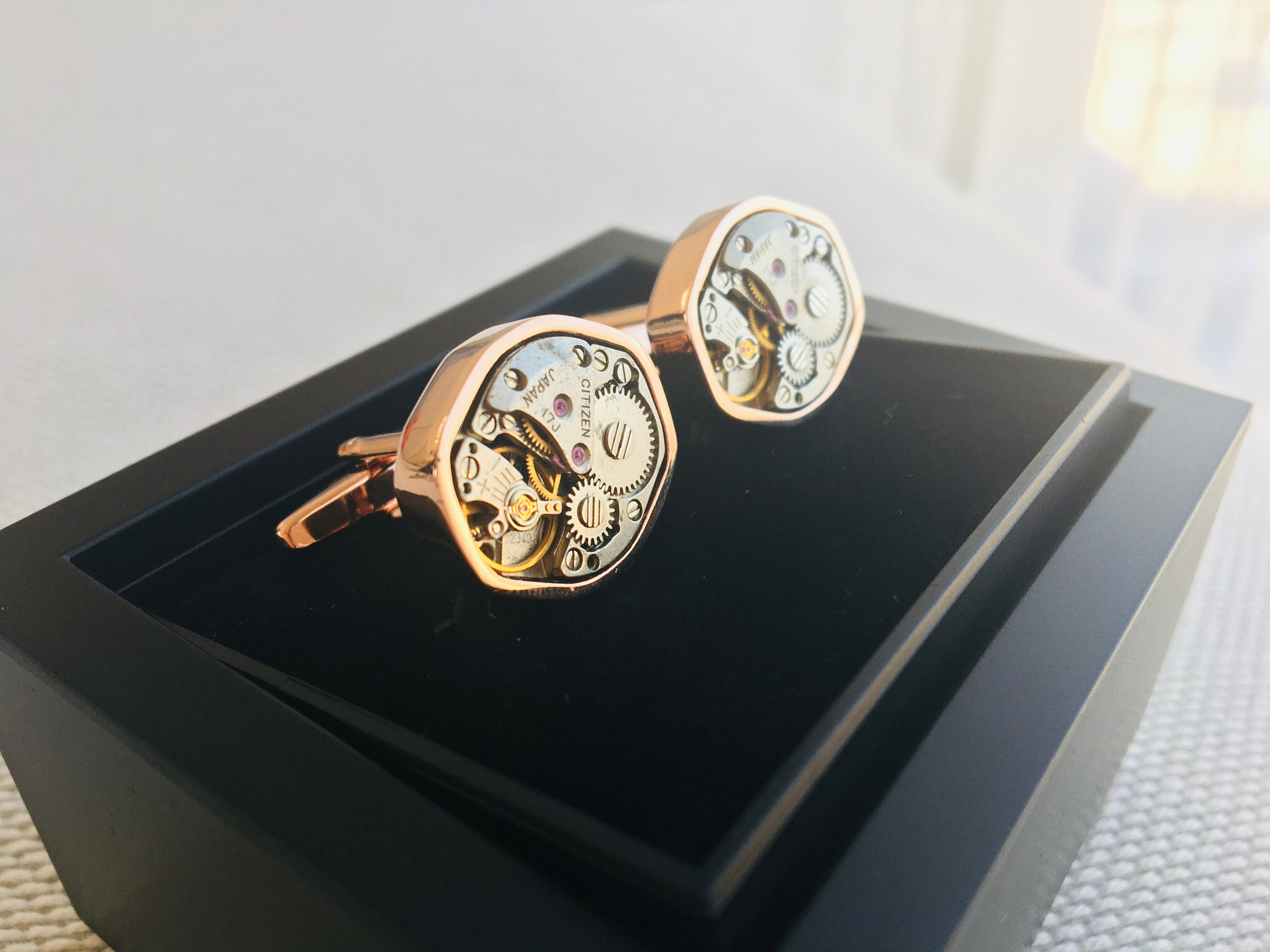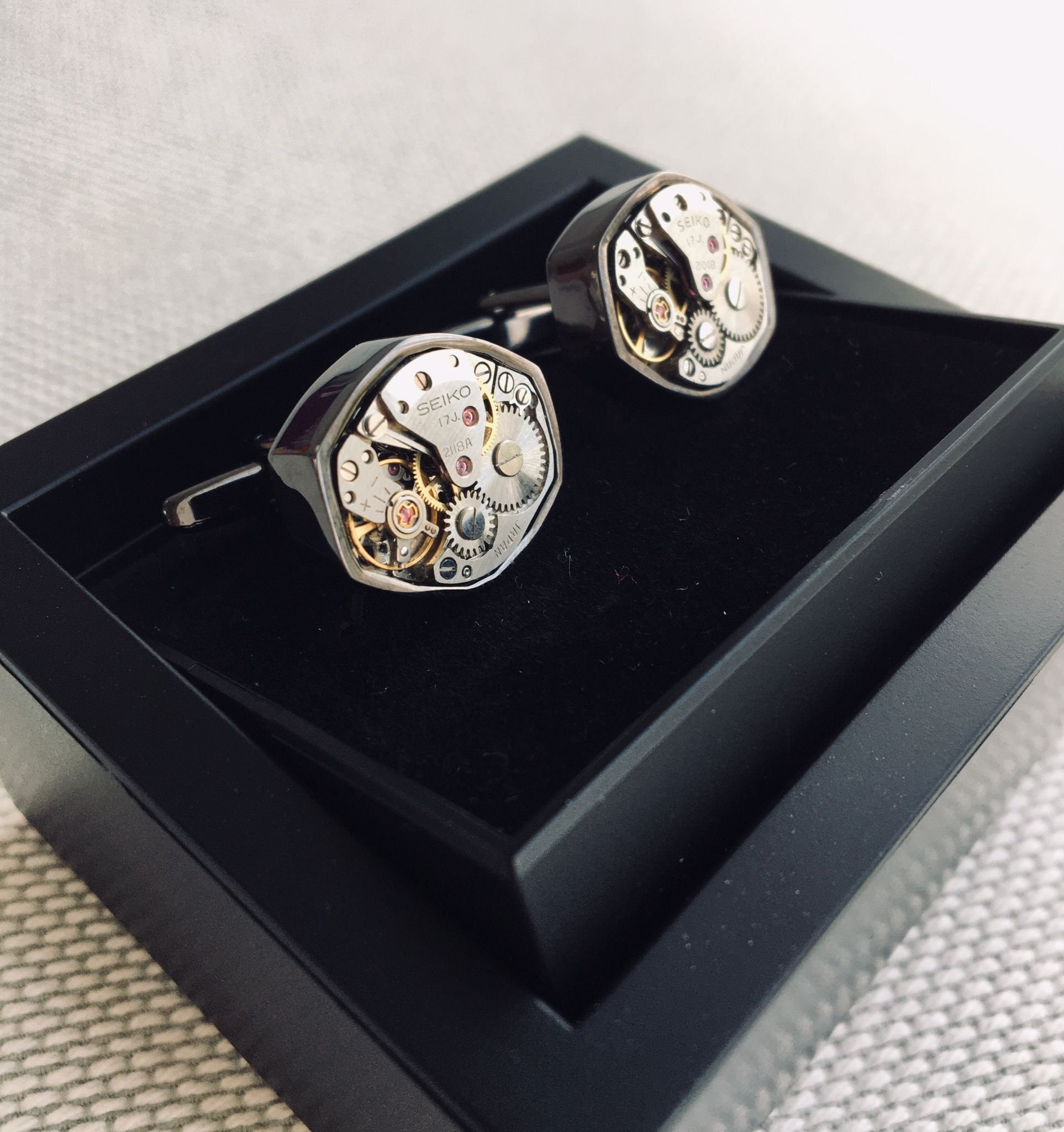 Cufflinks made with Seiko watch movements, unique steampunk gift, v...