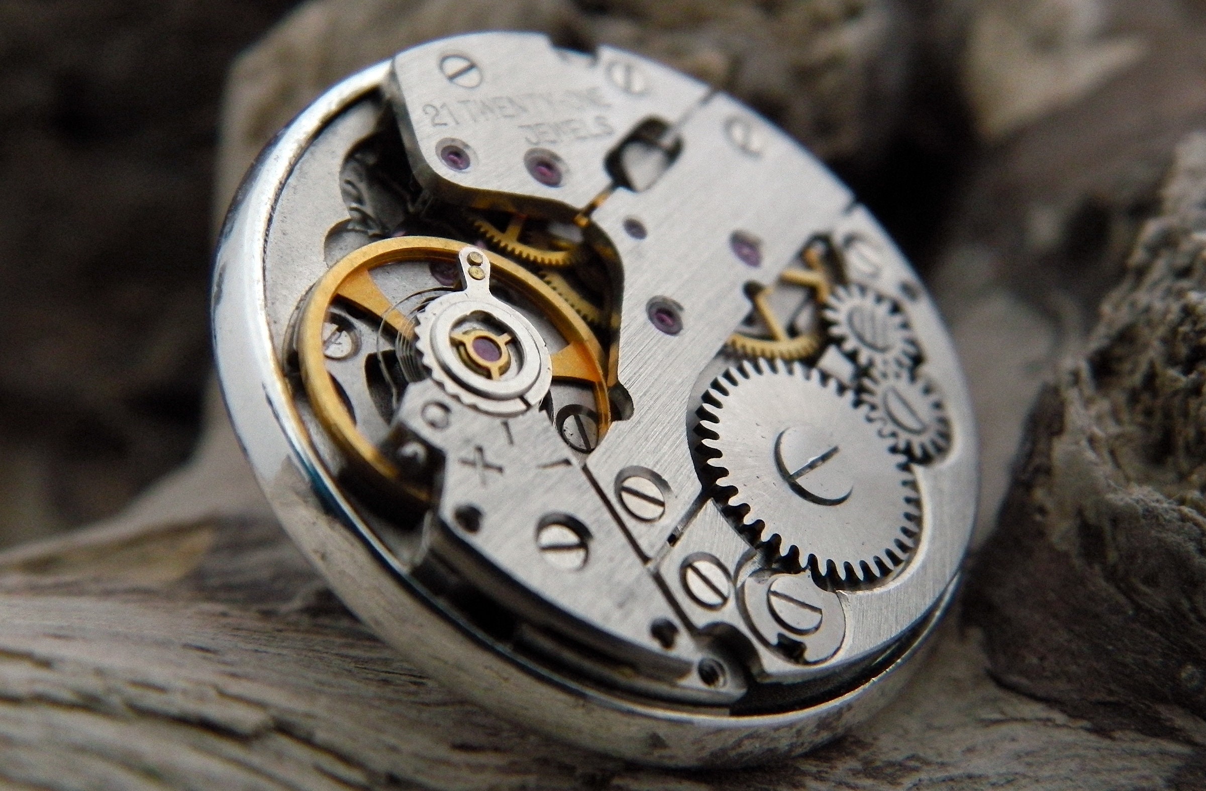 Steampunk Lapel Pin Badge, With Watch Mechanics. Vintage Watch Move...