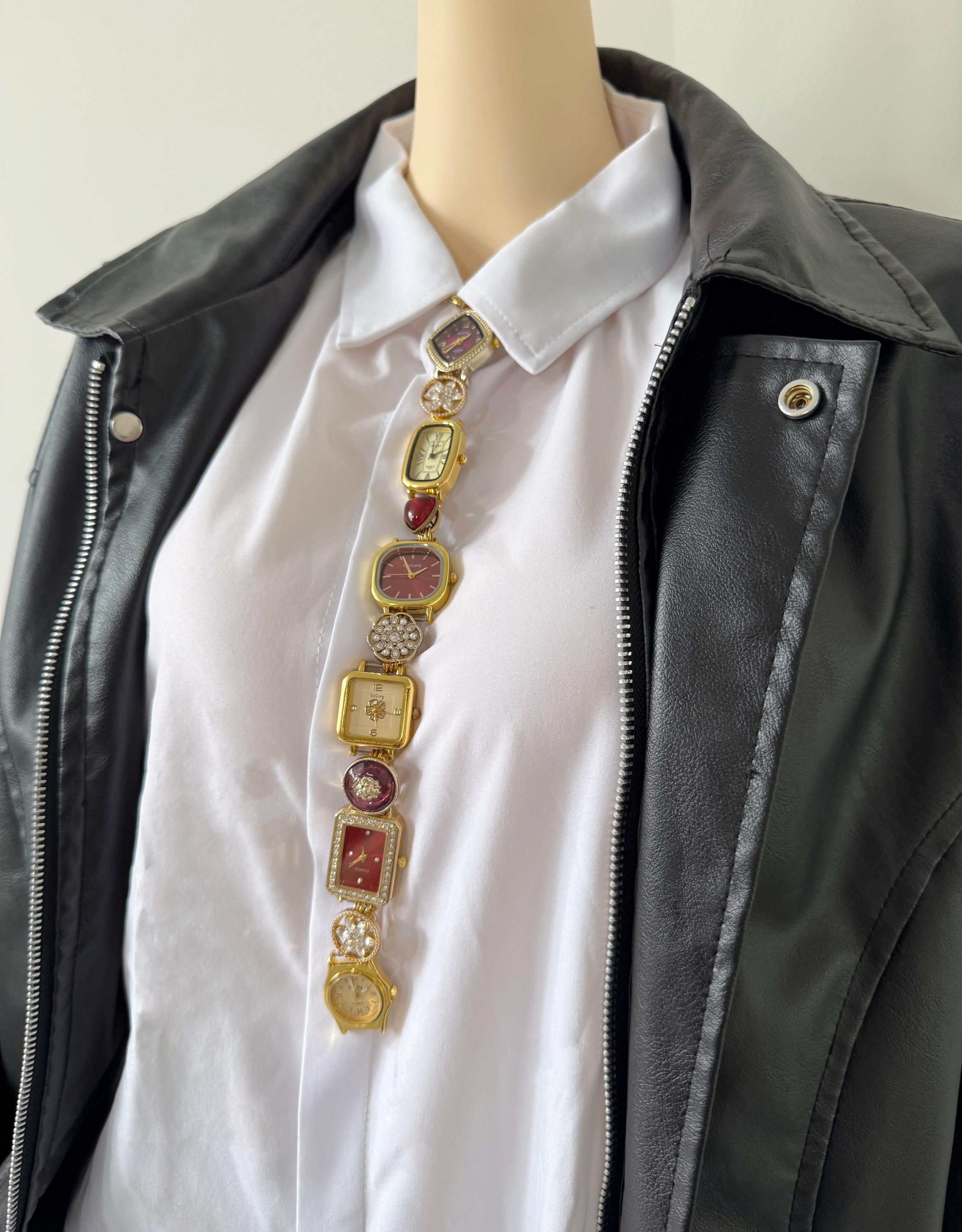 Punk Style Watch Tie Necklace,Gold Charms Watch Tie,Retro Working W...