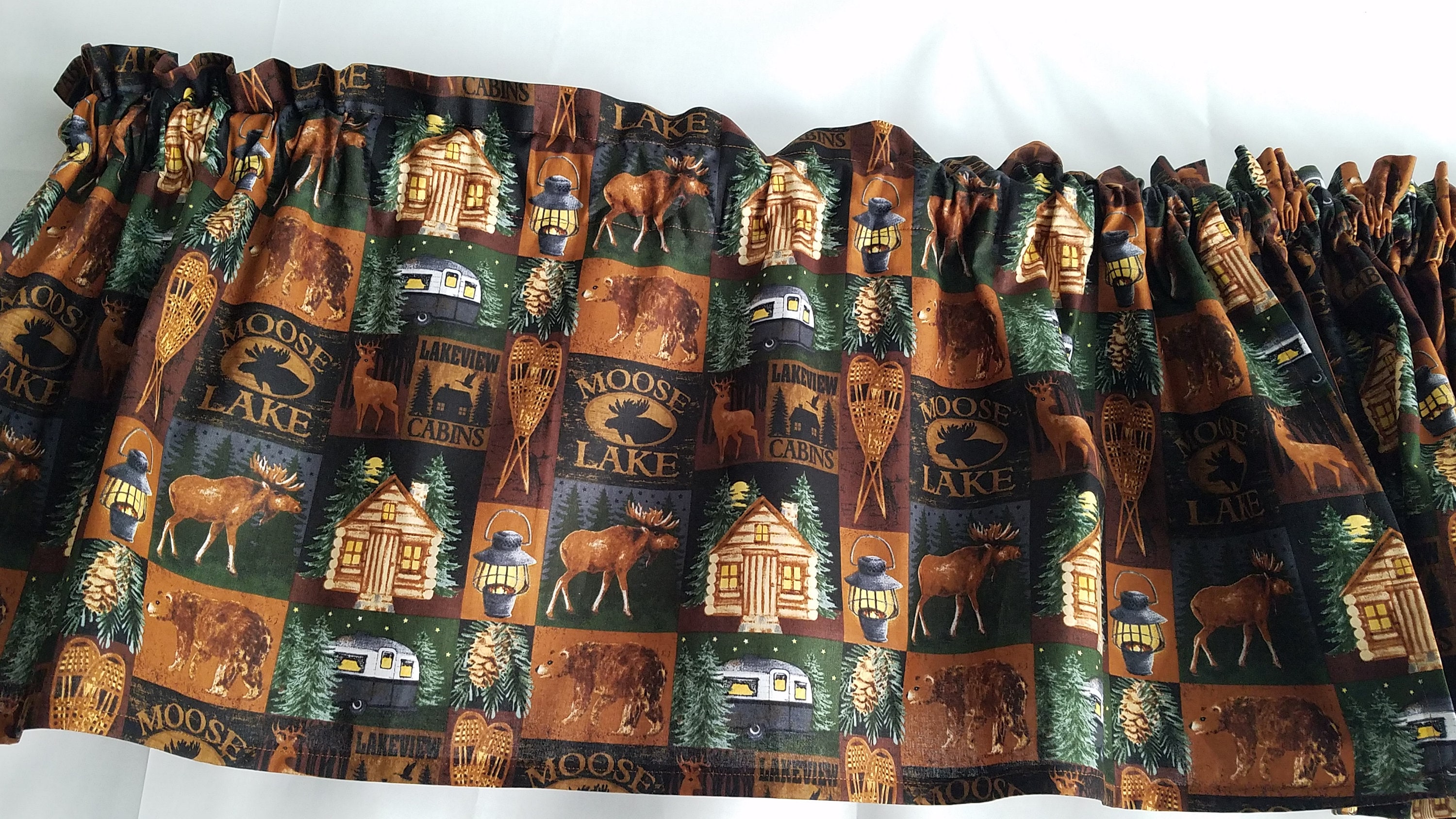 Moose Lake Cabin Valance Curtain: Rustic Outdoorsy Print