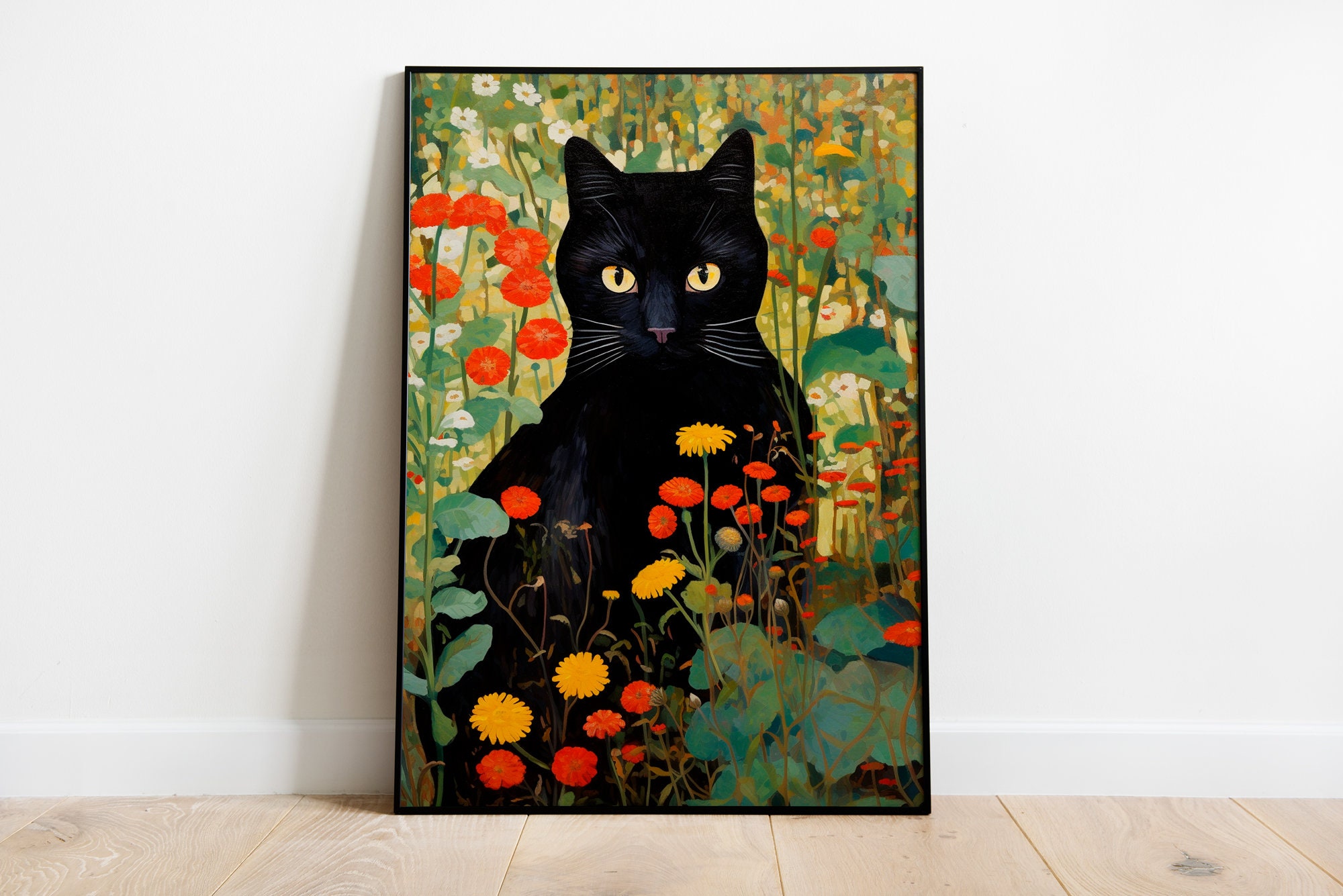 Gustav Klimt Garden Cat, Black Cat In A Garden Wall Art, Cat Print,...