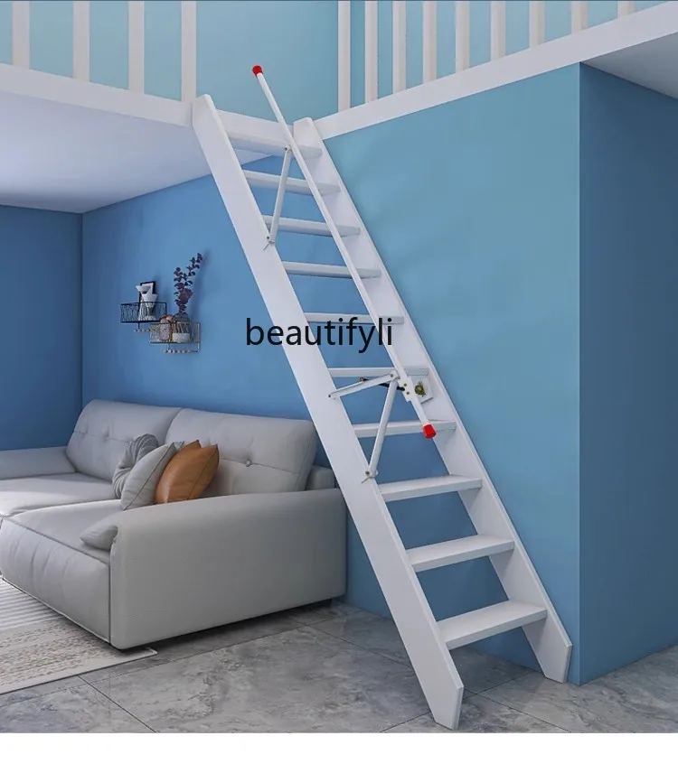 Solid wood household ladder attic side wall hanging telescopic invi...