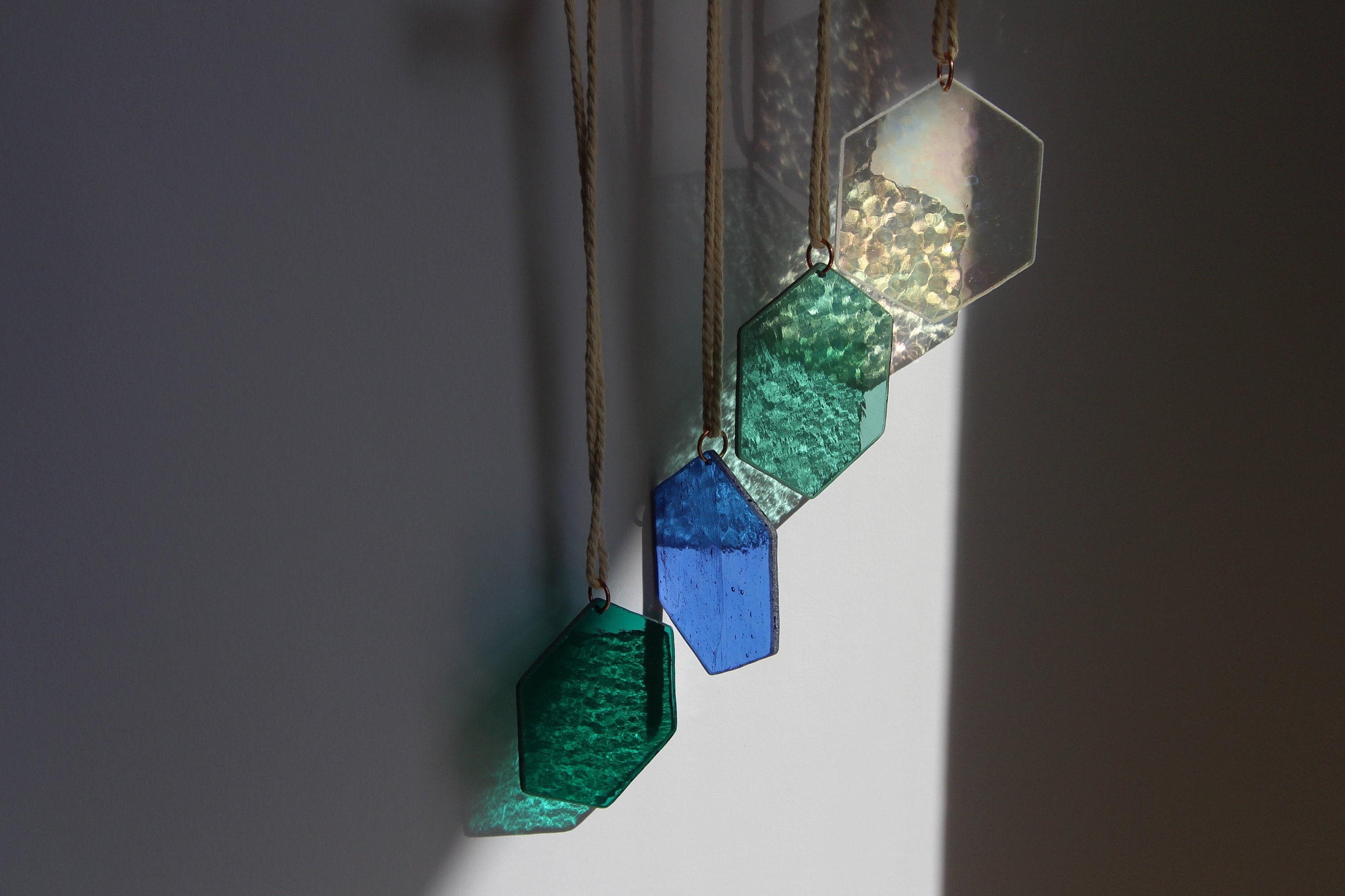 Glass honeycomb, garden decoration wind chime, hexagon, window deco...