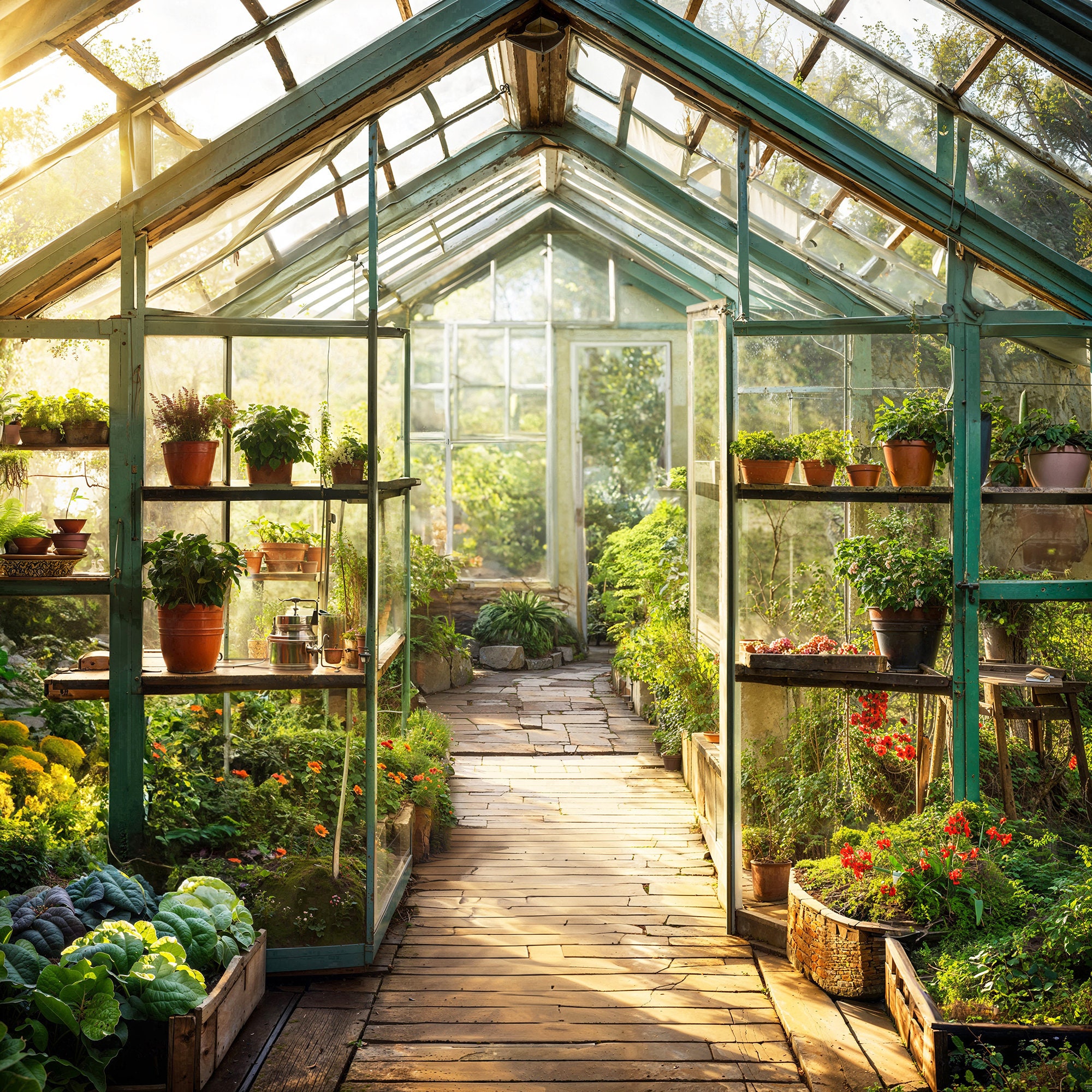 Introducing our Greenhouse Wall Hanging Tapestries 3D Shower Curtain Garden Murals, featuring a vibr...