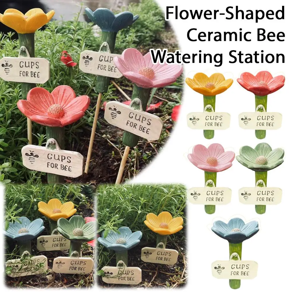 Flower-Shaped Ceramic Bee Watering Station Garden Decor Outdoor Pol...