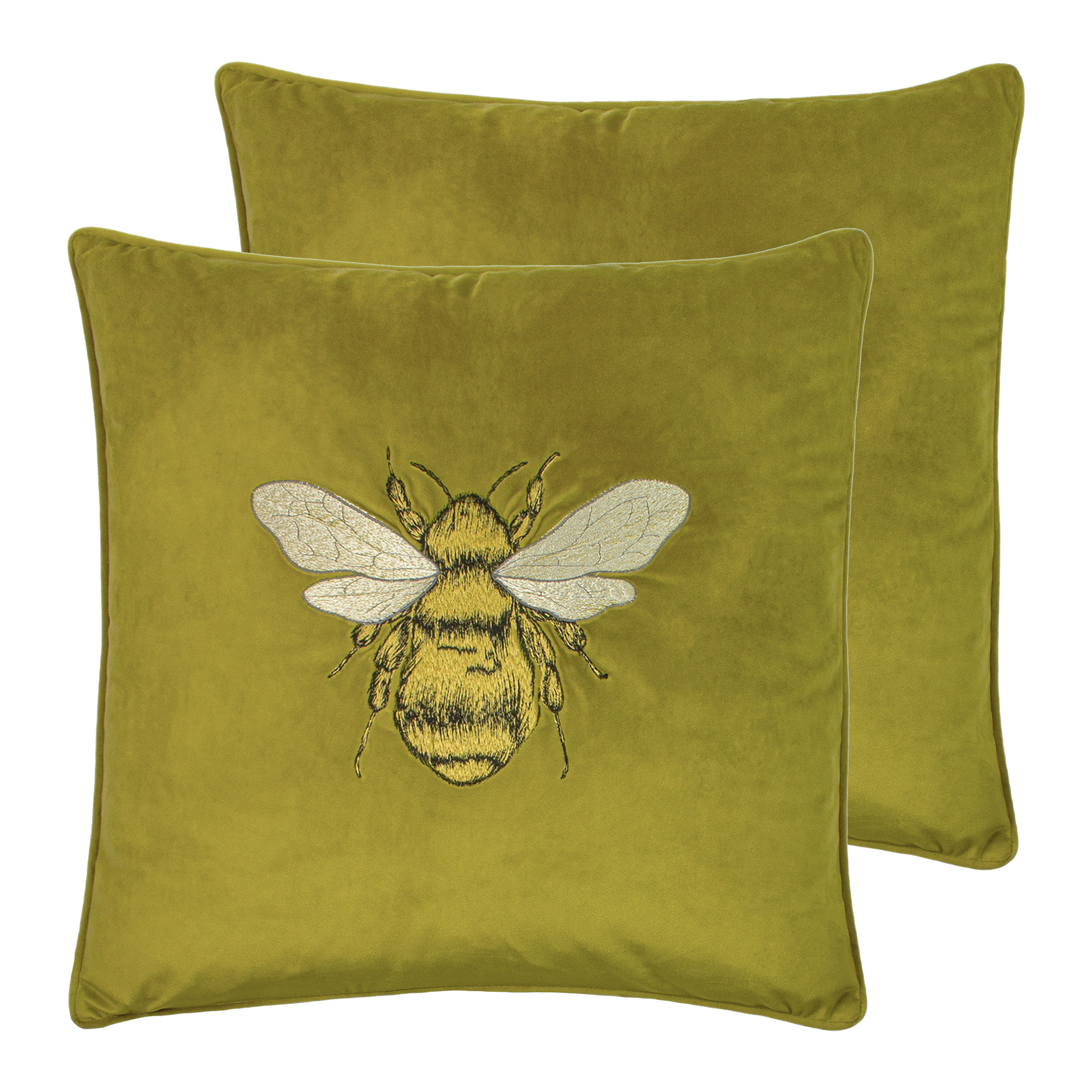 Paoletti Hortus Embroidered Bee Piped Velvet Cushion Cover - Olive ...