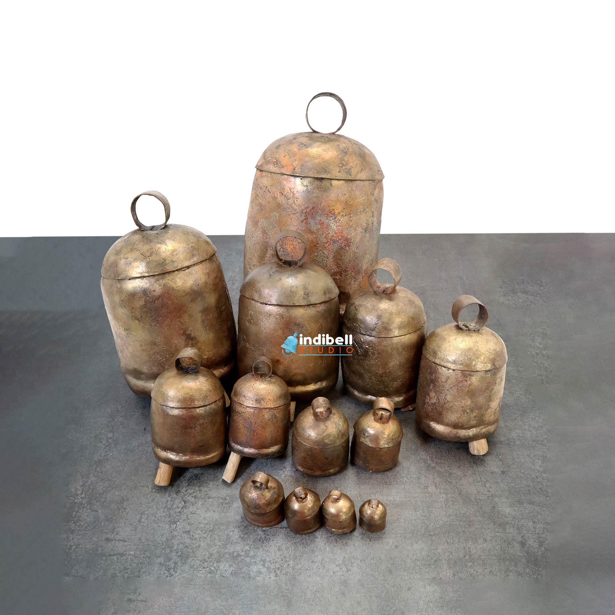 Set of 3 large Iron Cow Bells Hanging Garden Bells Handmade Indian ...