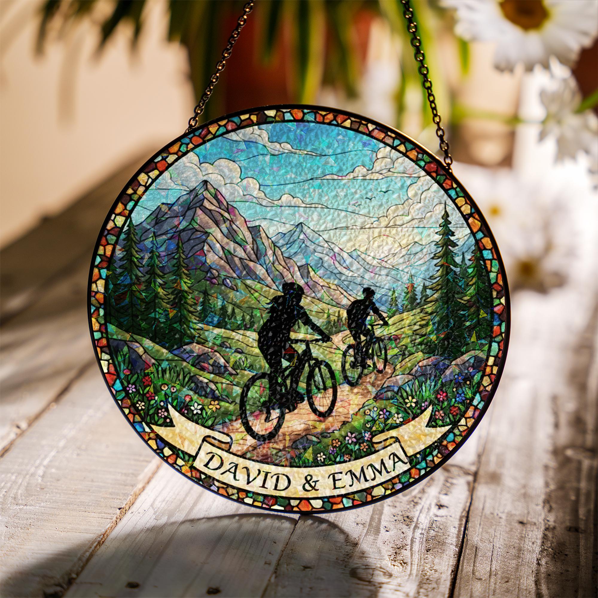 Personalized Biking Suncatcher, Couple Bike Ride Window Hanging, Mo...
