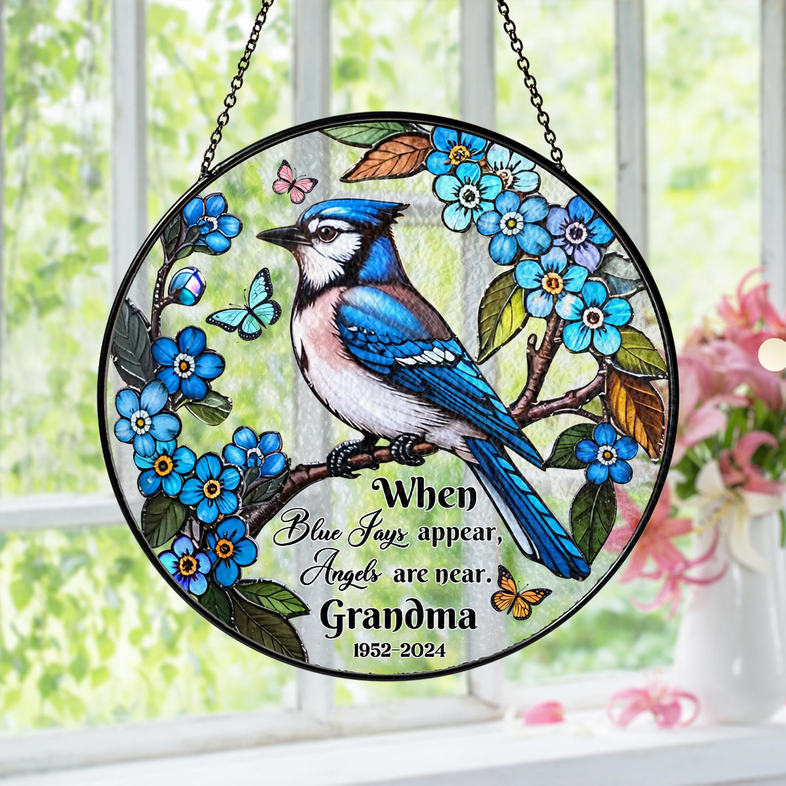 Blue Jay Memorial Stained Glass Suncatcher, When Blue Jays Appear A...