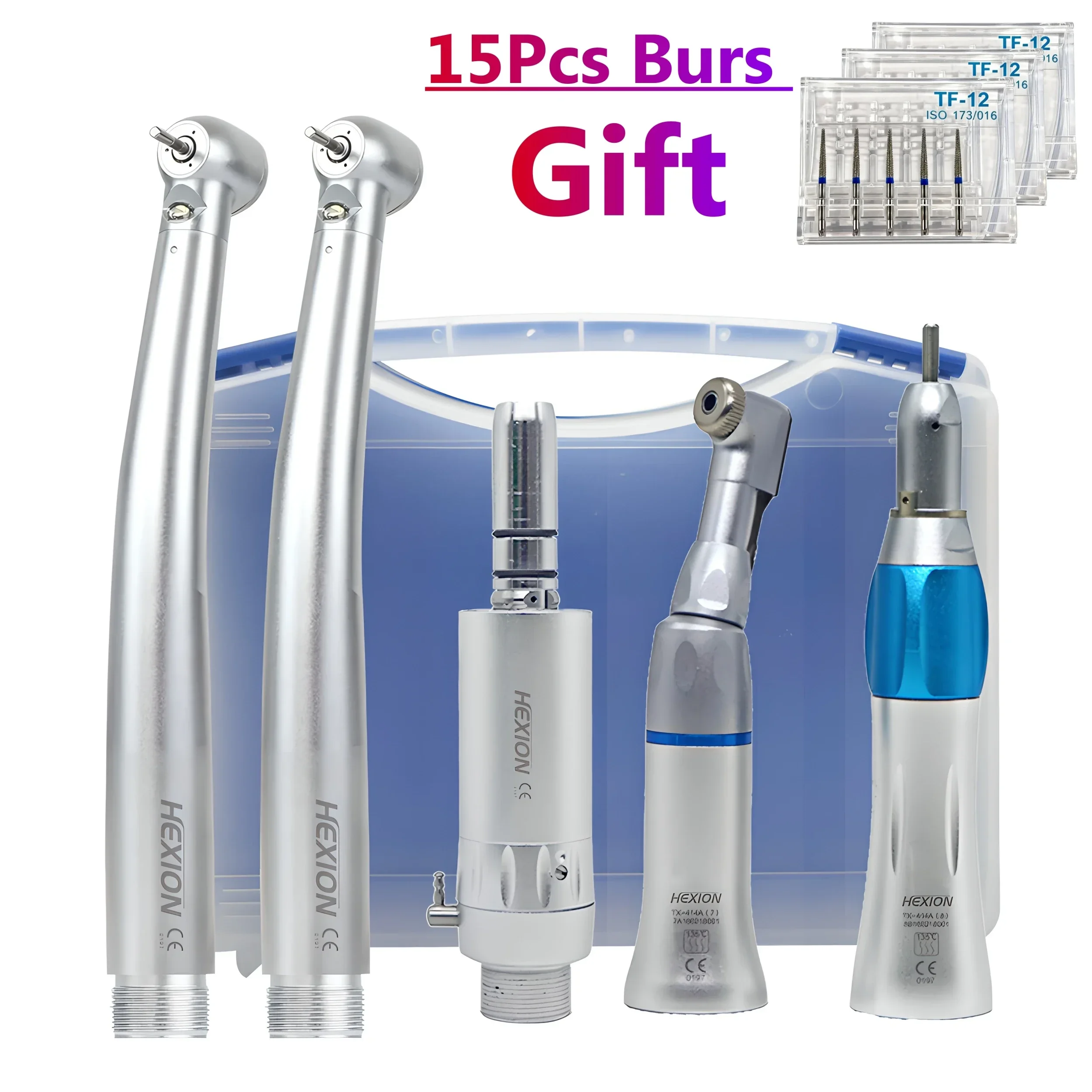 4Pcs/Kit LED High Speed Dental Handpiece Low Speed Kits Free 15 Burs With Lights E-generator Push Bu...
