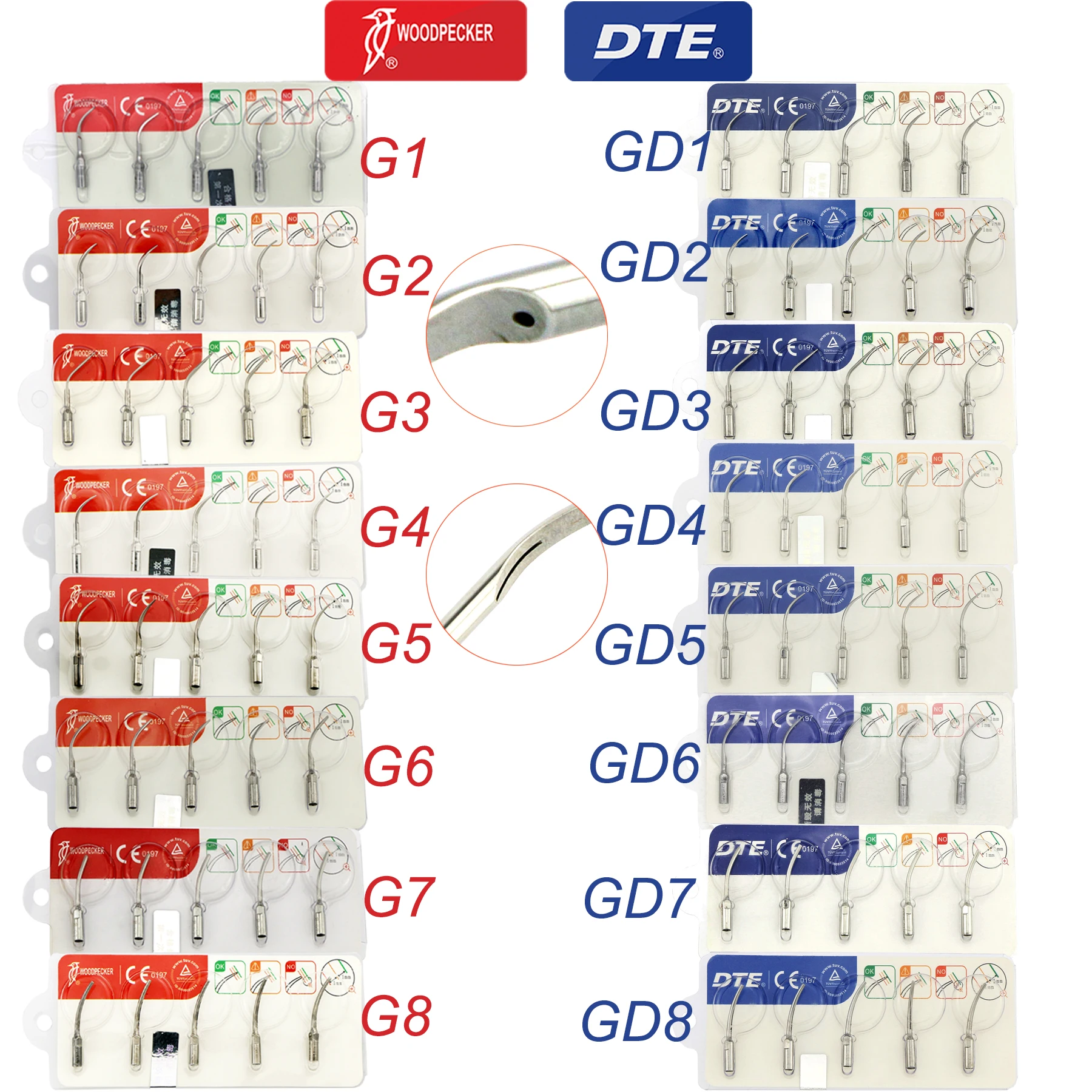 Original Woodpecker DTE Dental Scaler Tips Ultrasonic Scaling Tip G1-G8 GD1-GD8 For teeth cleaning F...