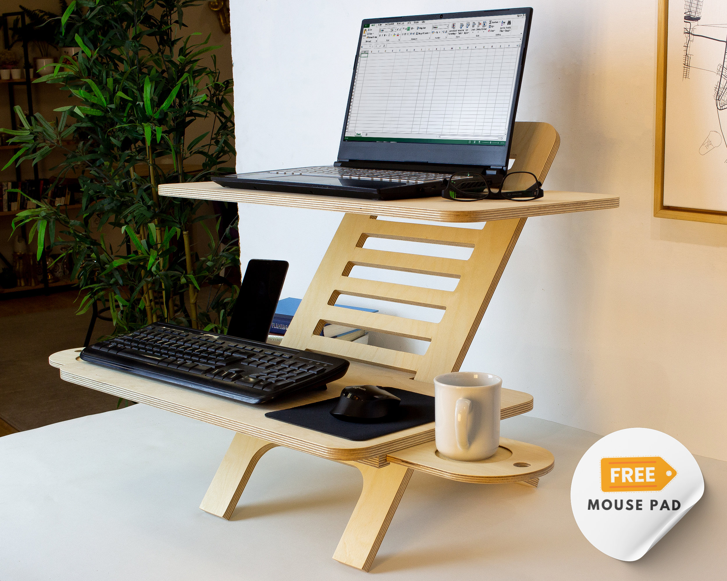 Adjustable Wood Laptop Stand, Standing Desk Converter