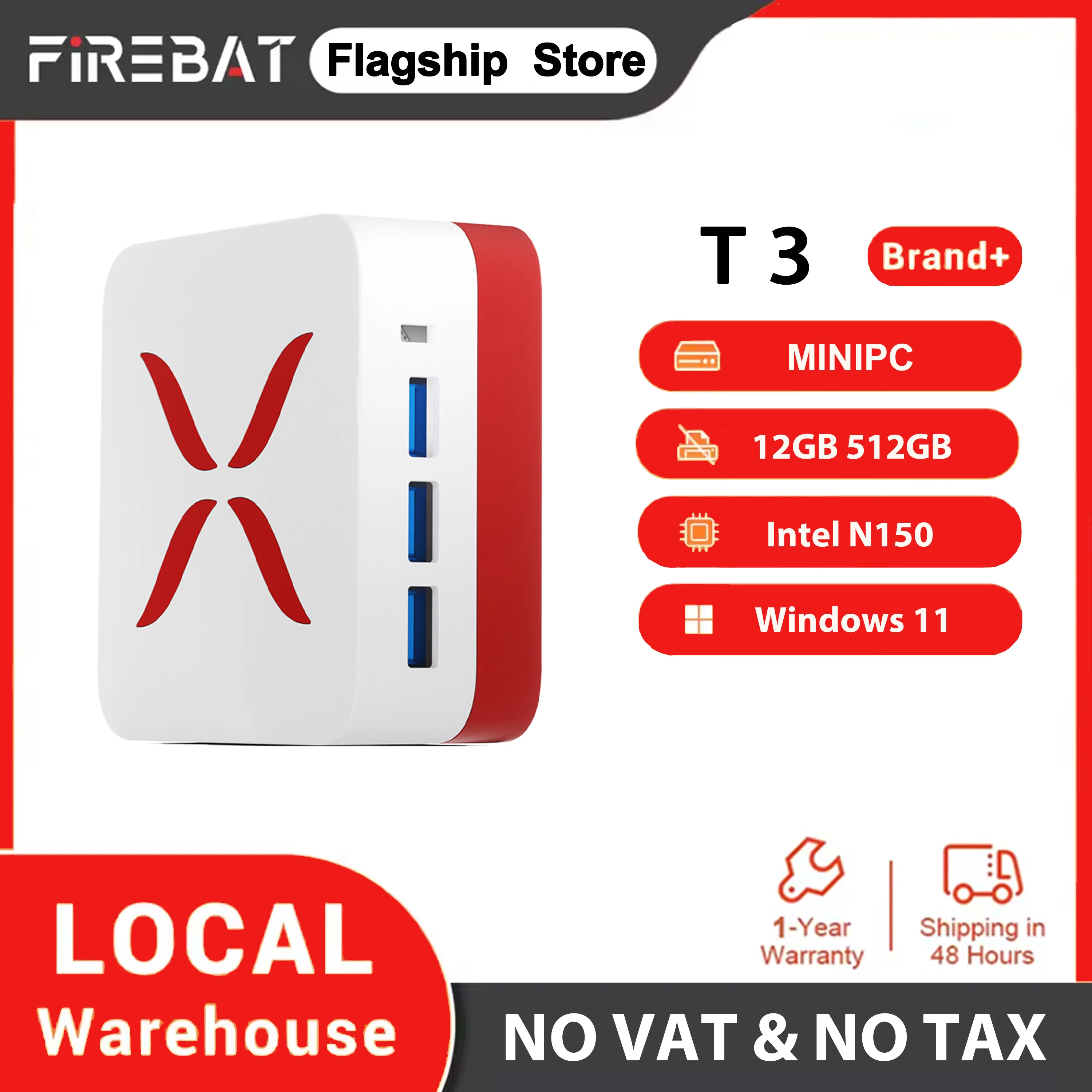 FIREBAT T3 Mini PC Intel N150 CPU Windows 11 Pro 12GB DDR5 RAM 512GB SSD Wi-Fi 5 Bluetooth 4.2 HDMI ...