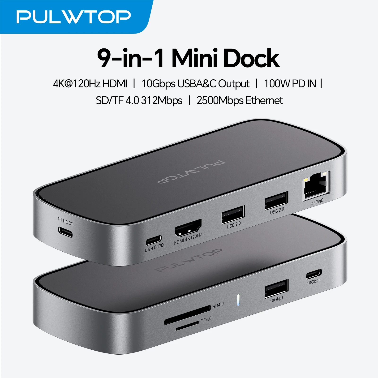 PULWTOP 9 in 1 USB C Docking Station, USB C Mini Dock with 4K@120Hz...