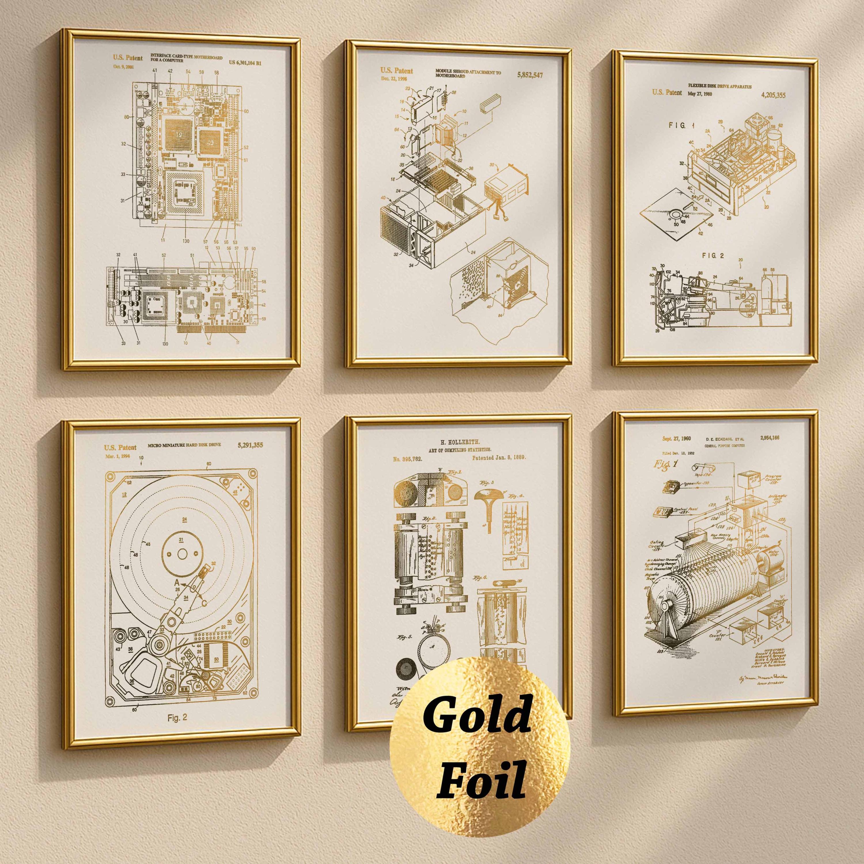 6 Vintage Computer Patent Prints First PC Blueprint Mother Board Patent Disk Drive System Patent IT ...