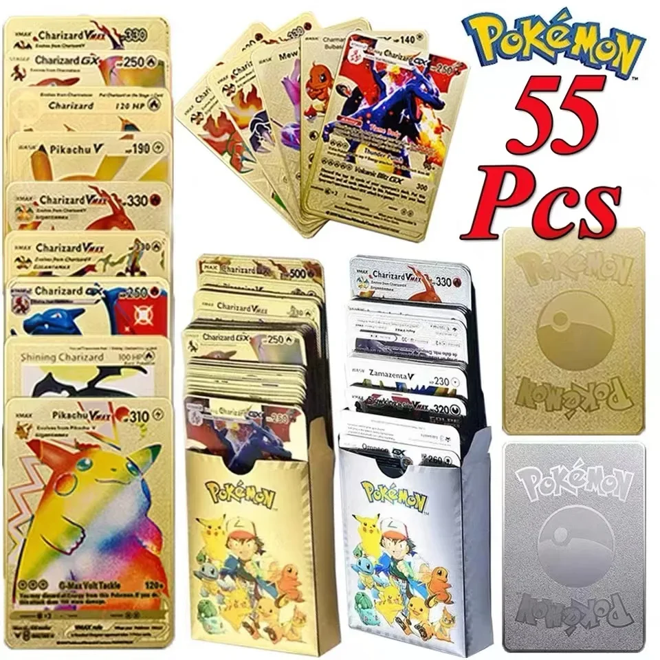 110-27Pcs Pokemon Gold Foil Card Charizard VMAX GX VSTAR Cards English French German Spanish Pikachu...