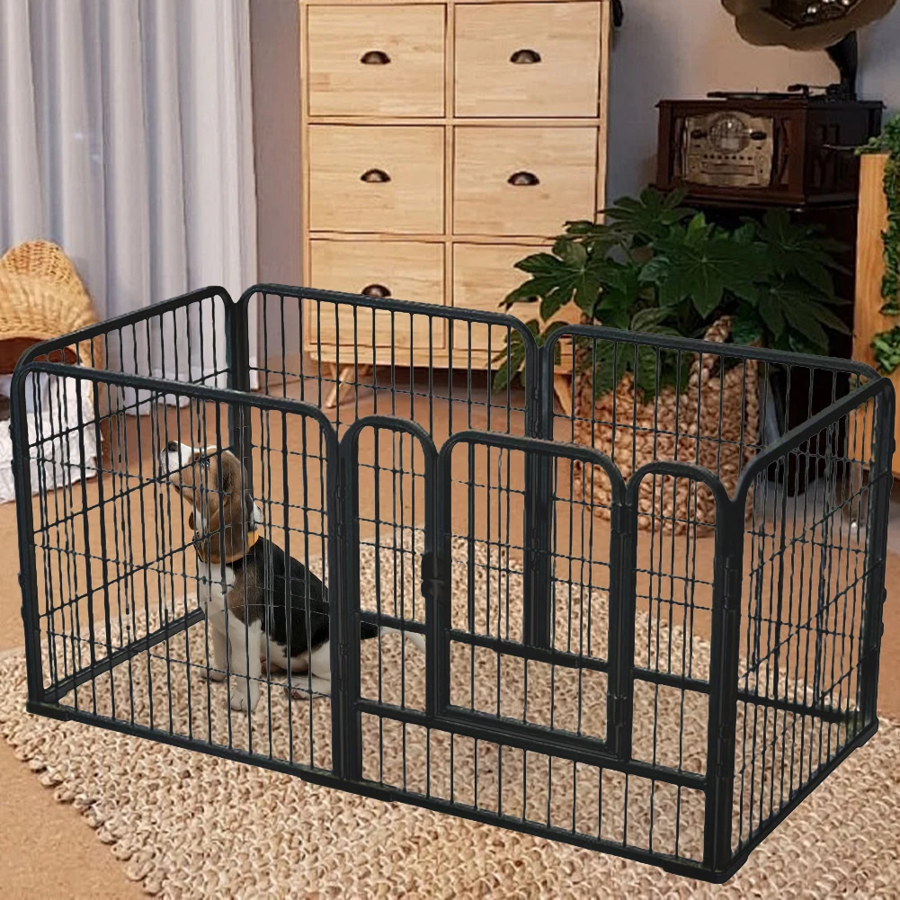 6 Panels Puppy Kennel Cage Foldable Metal Barrier Playpen Dog Exercise Fence Pet Kennel House For Do...