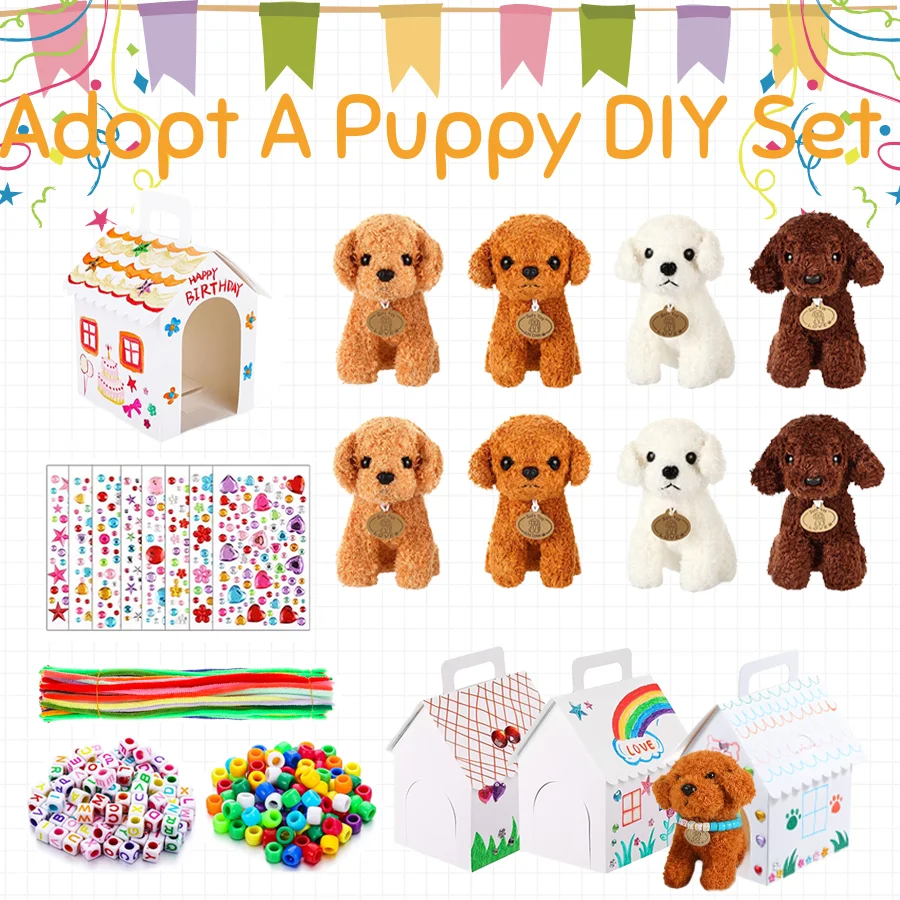 8-24Sets DIY Adopt A Puppy Party Favors Make Your Own Stuffed Animal Teddy Dog Bead Pets Kit with Do...