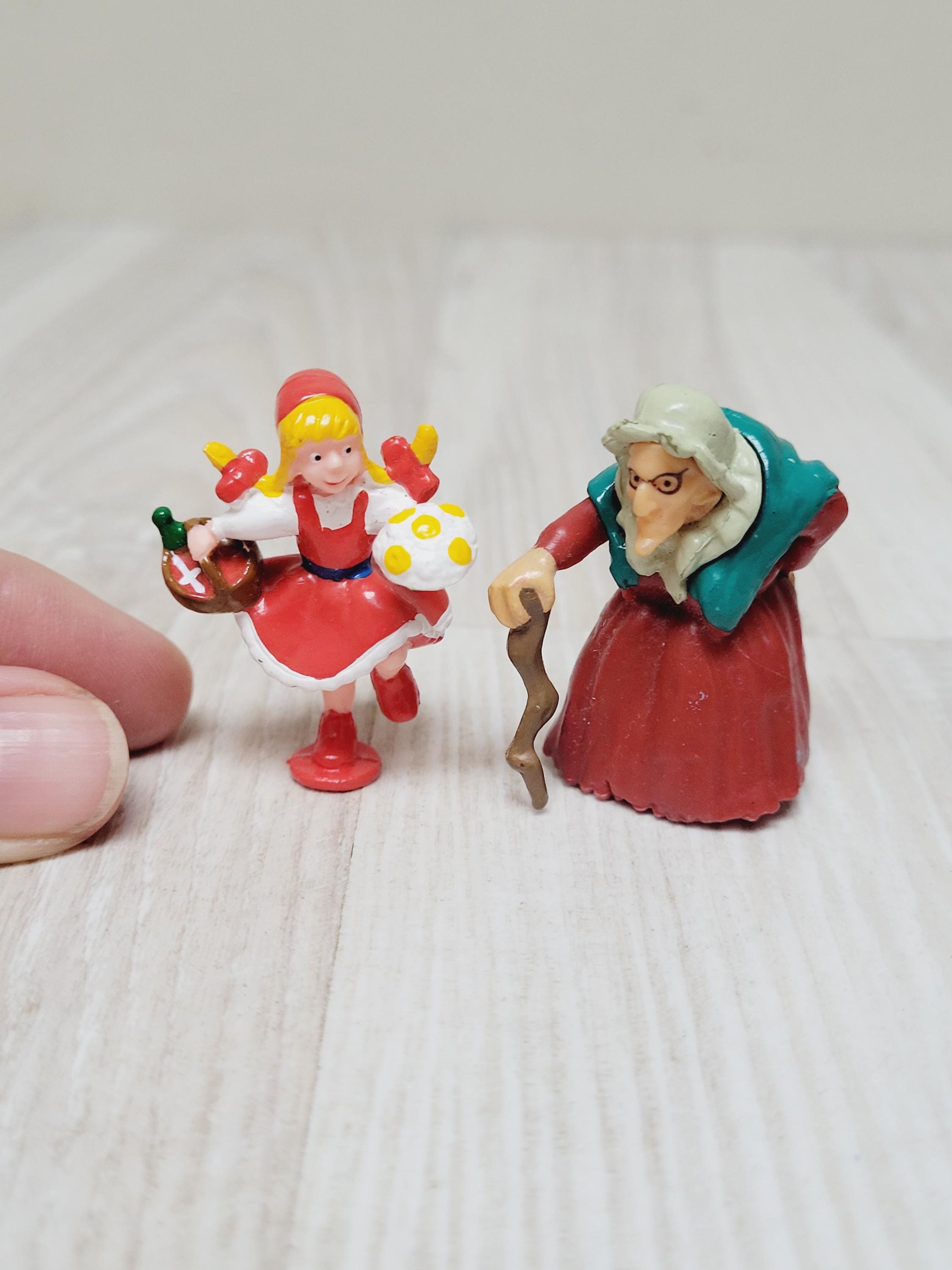 2 Little Red Riding Hood miniature figurine, Vintage girl granny pl...