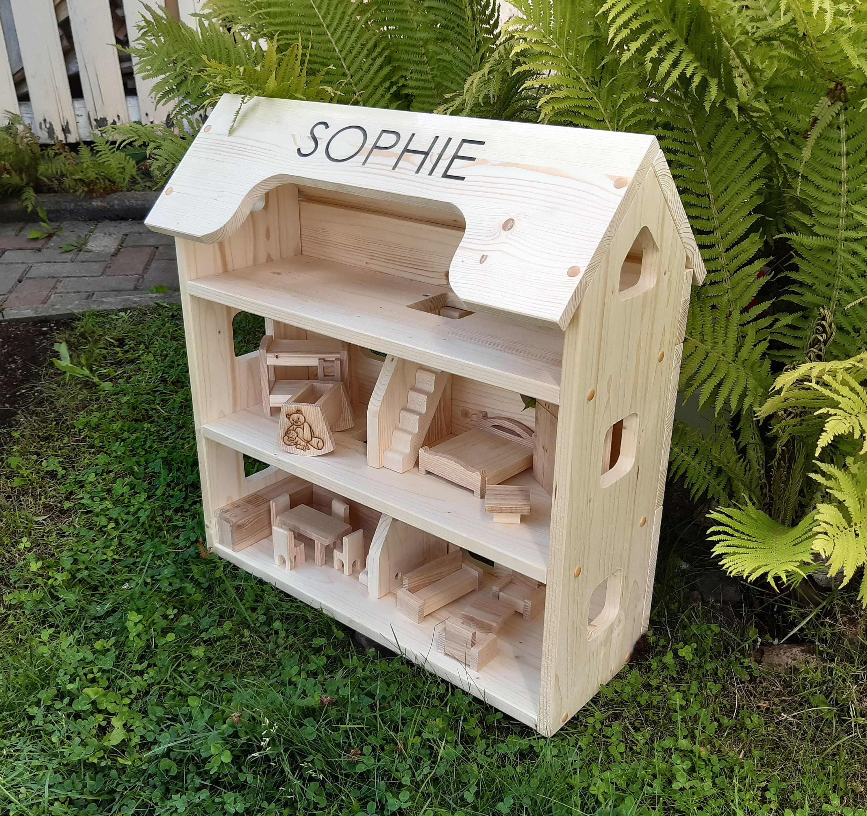 Large three-storey wooden dollhouse, unique gift for a girl, perfec...
