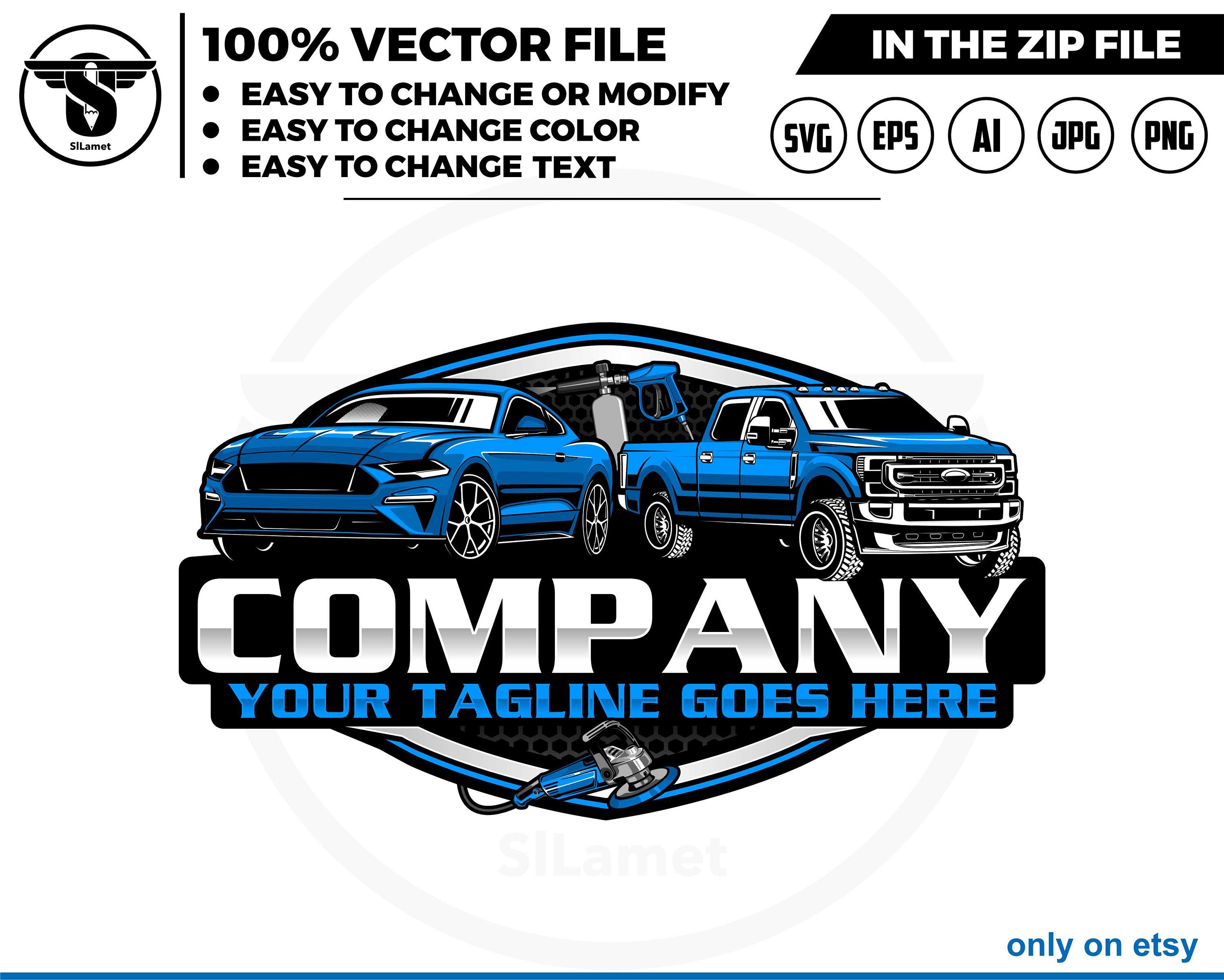 Car Wash Logo Template: Truck & Sport Car Detailing (Digital Do...