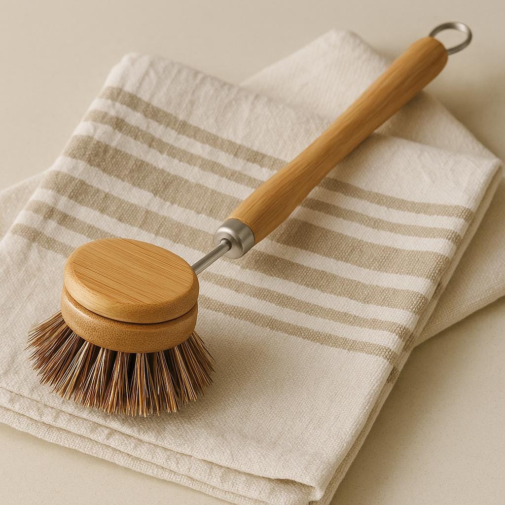 Upgrade your cleaning routine with our Bamboo Dish Brush Long Handle! This eco friendly kitchen scru...