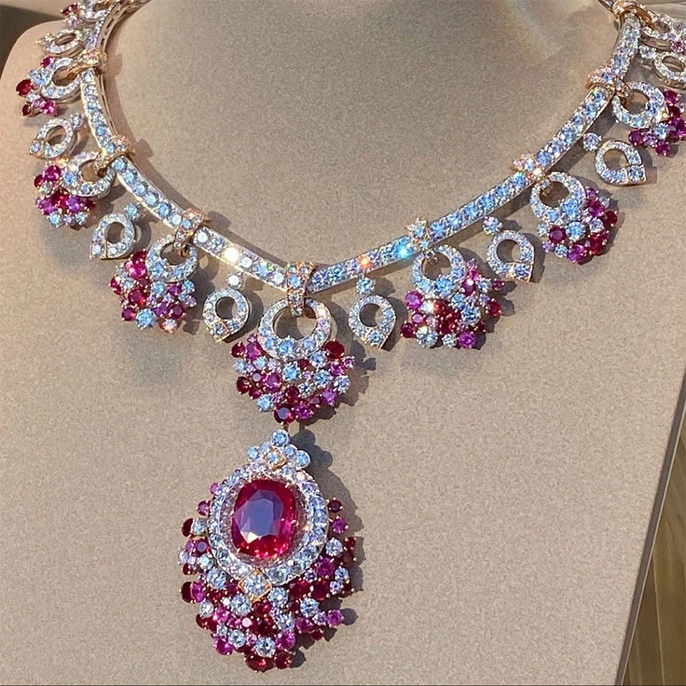 Original Princess Sparkling Crystal Wedding High-end Jewelry Set Charming Women's Heart-shaped Neckl...