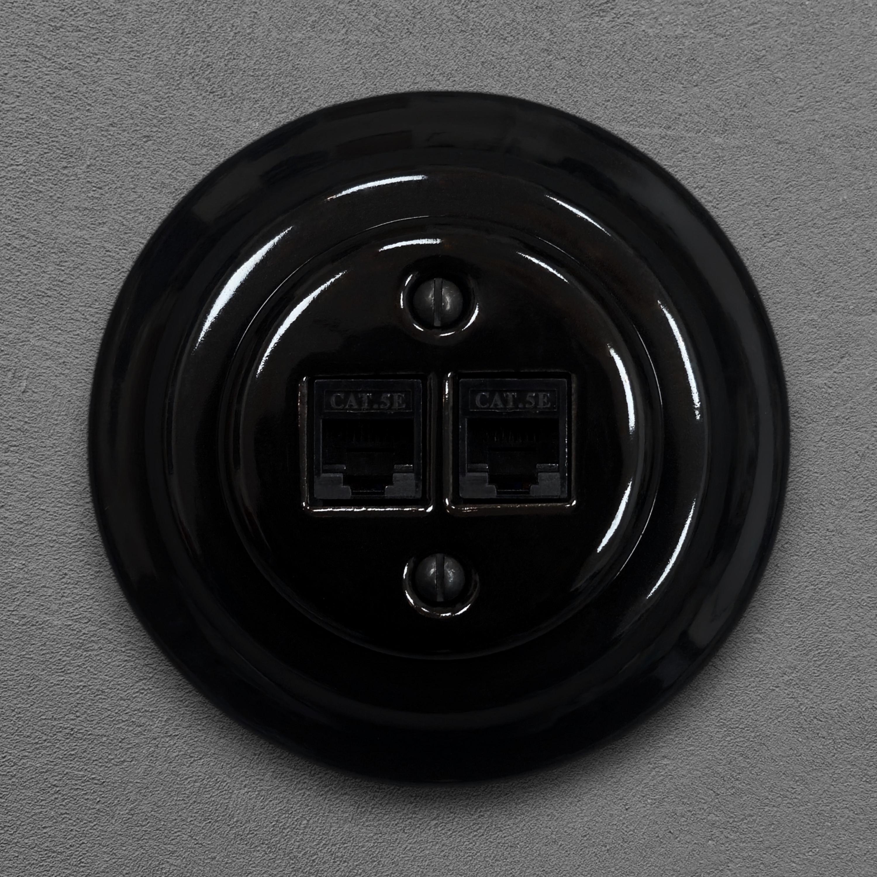 Black Porcelain RJ45 Network Socket, CAT.5E, Vintage Style Flush Mo...