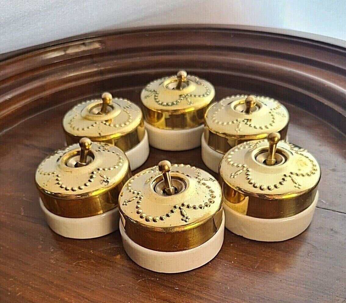 Vintage Set of 8 White Plated Brass and Ceramic Switches | Elegant ...