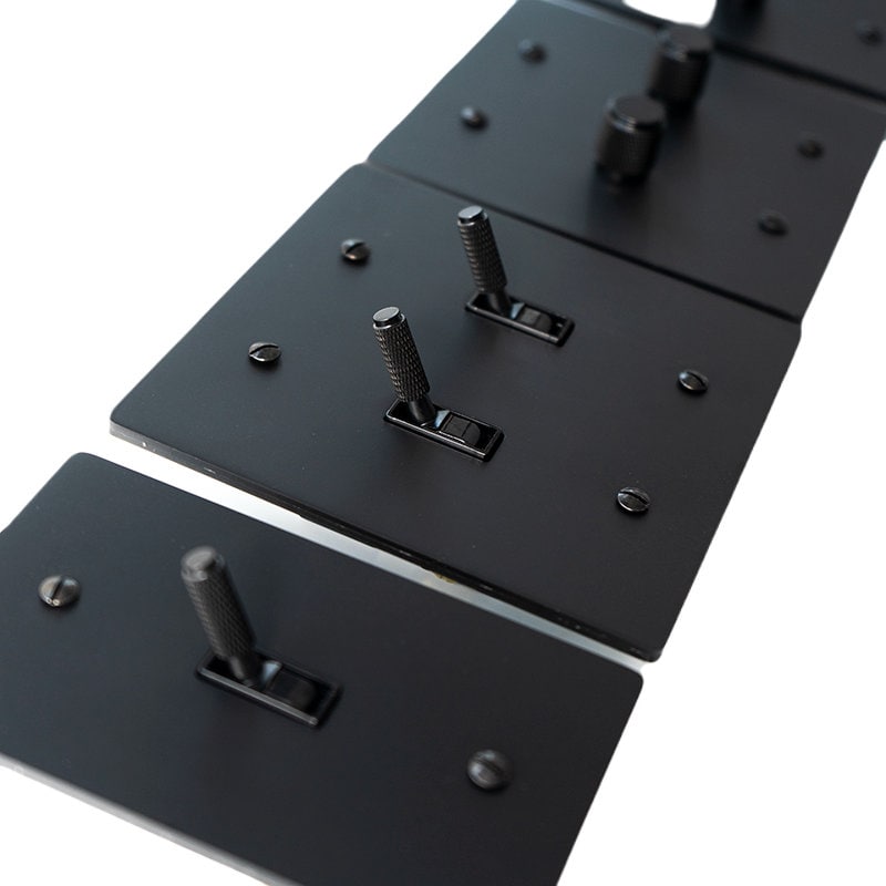 Dual Toggle and Dimmer Combo Switch Plate - Matte Black with Brass ...