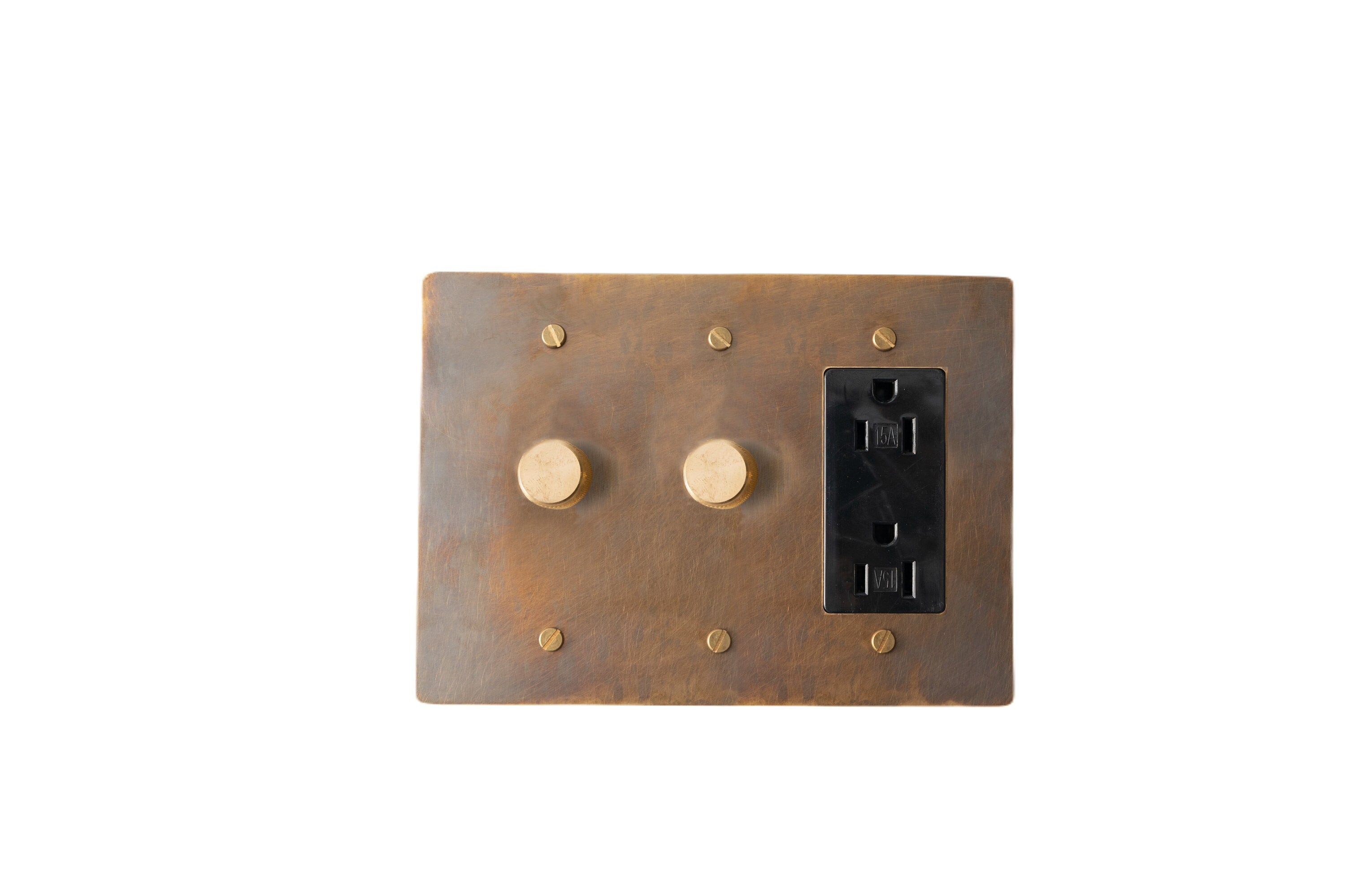 "Dual Dimmer and Outlet Combo Switch Plate - Antique Brass Material: Solid Brass Included Acces...