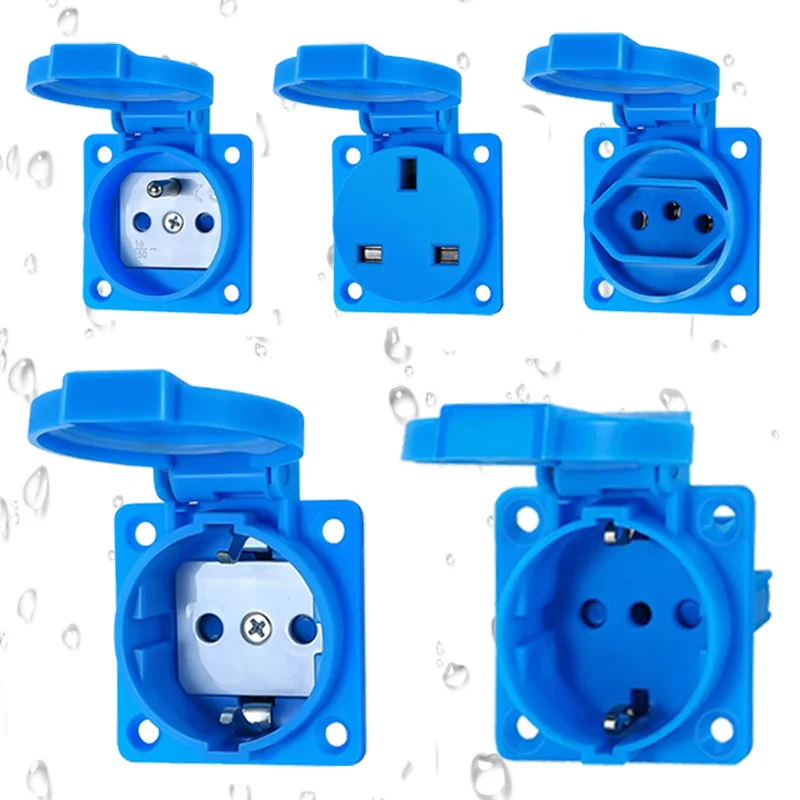 Industrial Grade Waterproof Connector 16A/250V Multifunctional IP54 Panel Socket for German UK Frenc...