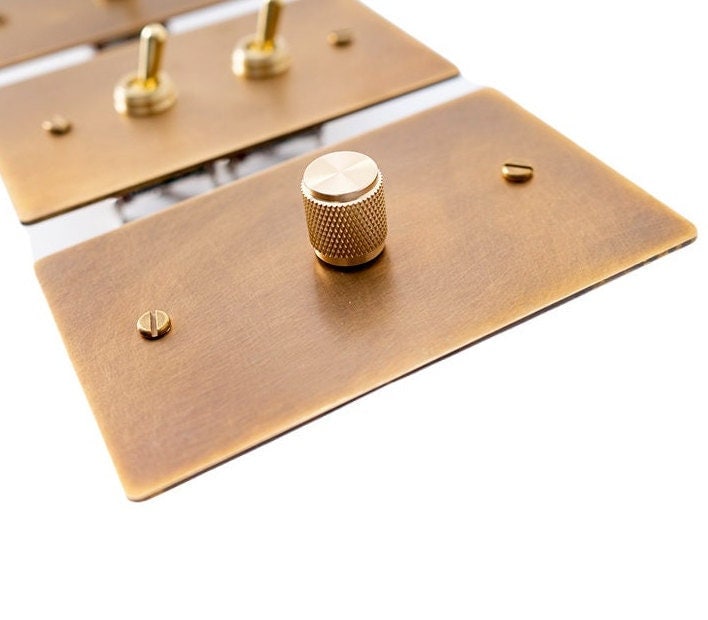 Aged Brass Dimmer Switch Plate - Retro Rotary Light Control - Singl...