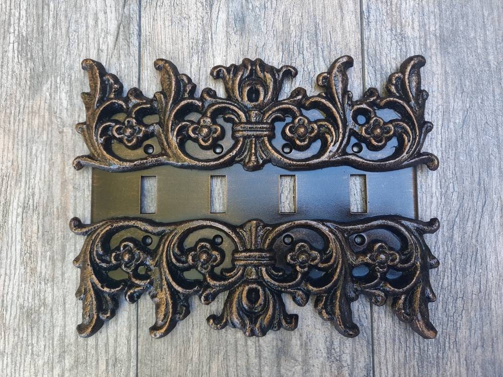 - This is a quad toggle plate cover made of unbreakable nylon. It has two metal medallions with leaf...