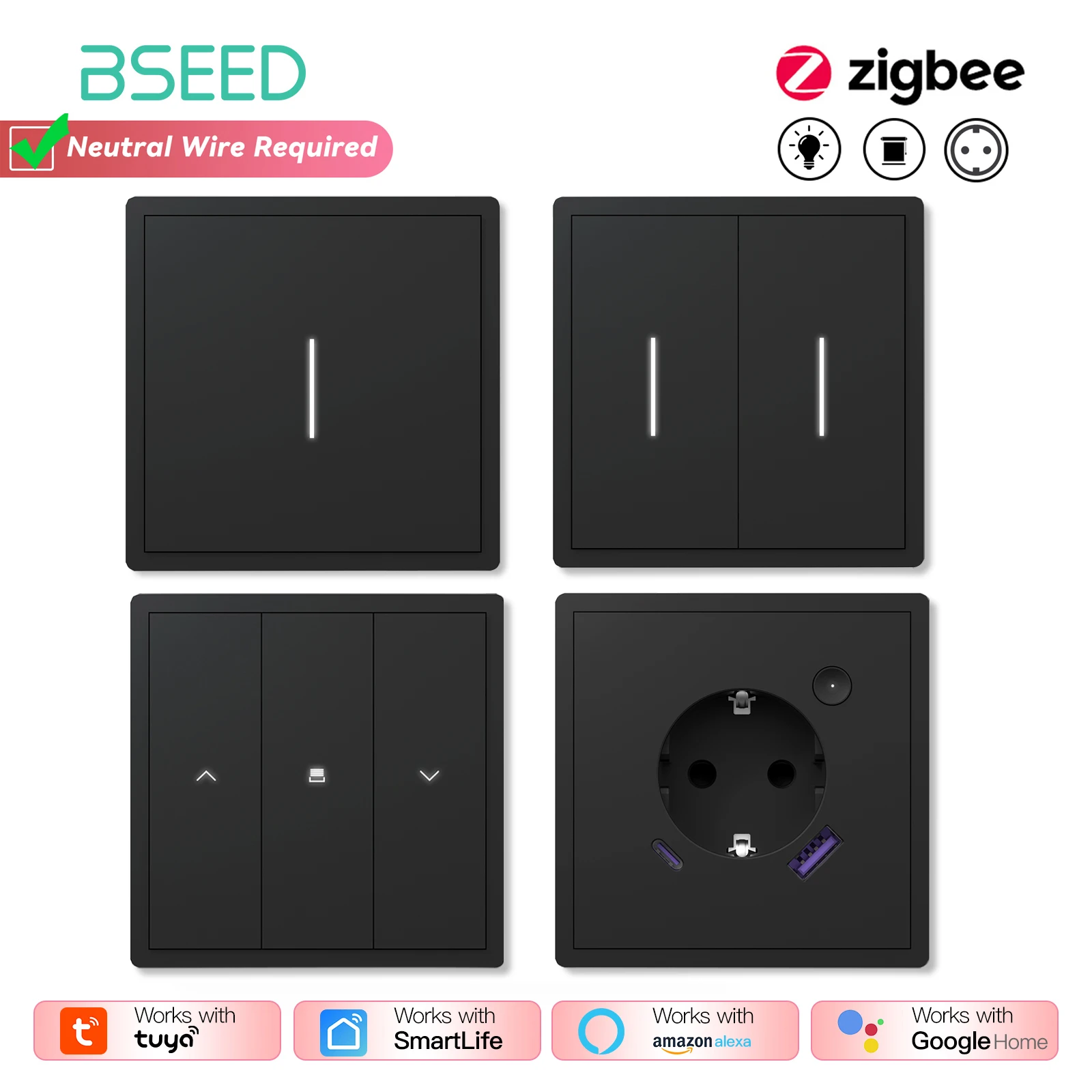 BSEED Zigbee 1/2/3/4Gang Smart Light Switches Mechanical Click Buttons Roller Shutter Blinds Switch ...
