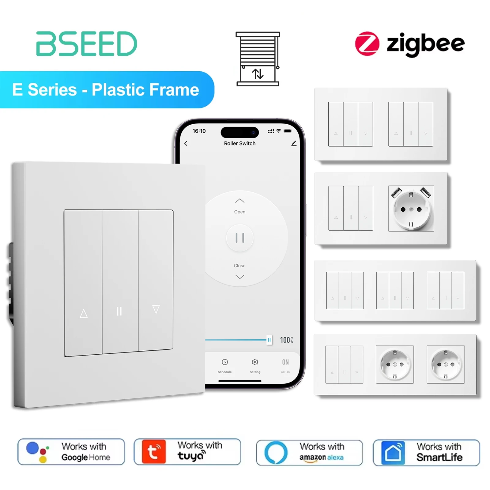 BSEED Zigbee Roller Shutter Push Button Switch Smart Wall Blinds Switches Tuya Smart Life App Plus E...