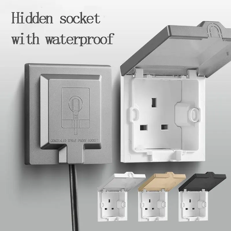 Hidden Embedded Invisible 13A UK Socket Wall Recessed 86 Waterproof British 3pin 3 Hole Universal So...