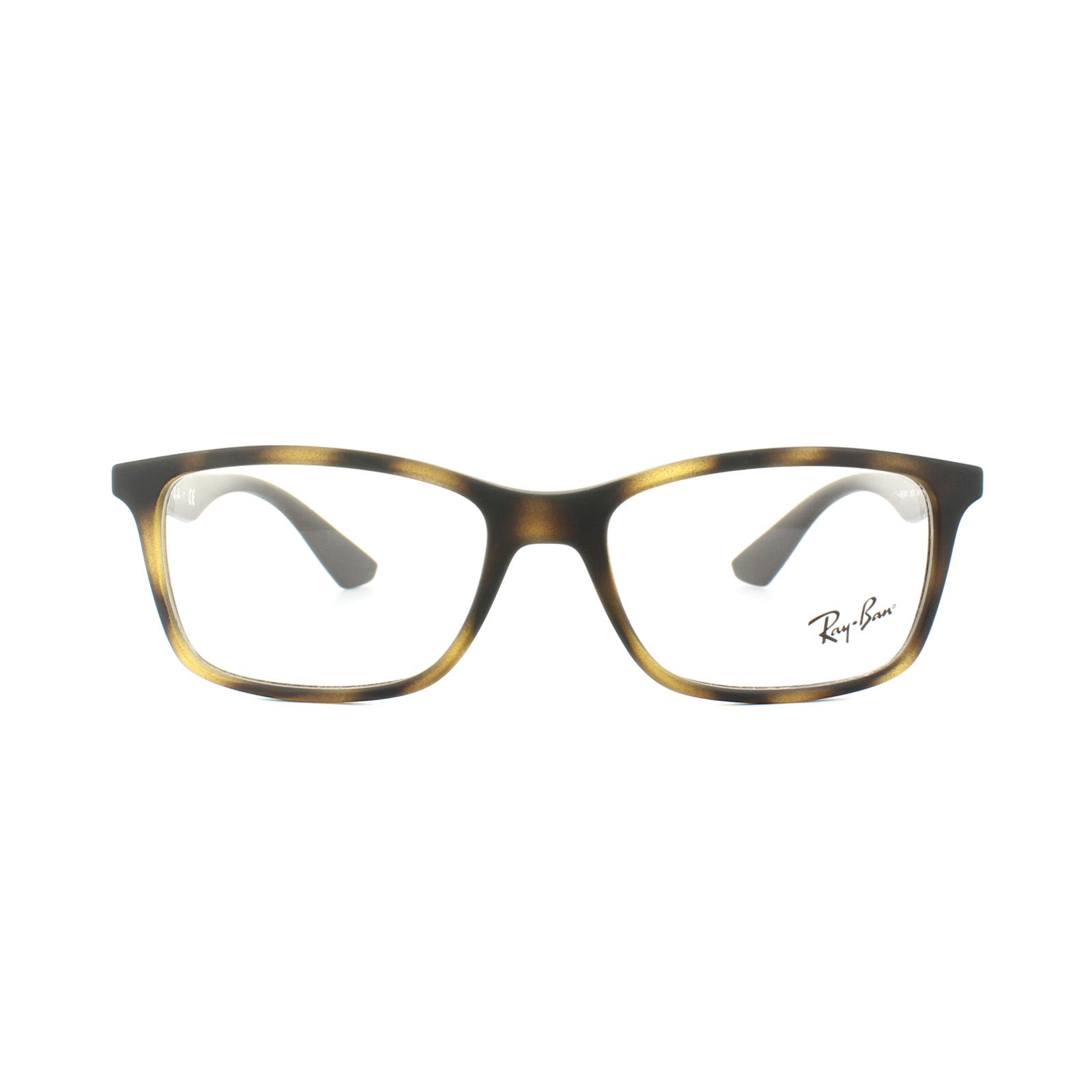 Ray-Ban 7047 5573 glasses frames have a Matt Havana frame which is made of Plastic and has a Rectang...