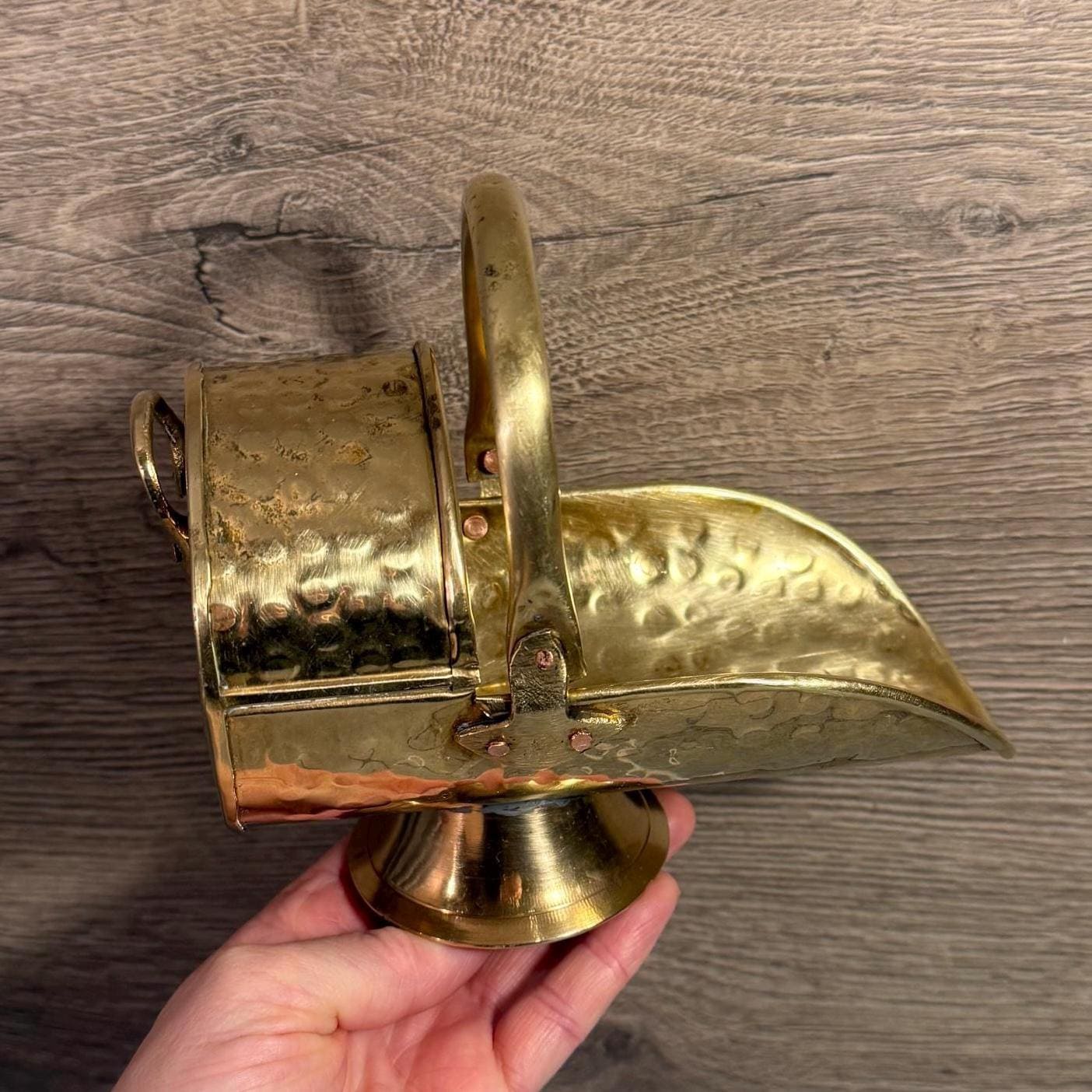 Vintage Mini Brass Hand Hammered Swing Handle Coal Bucket Pail Scut...