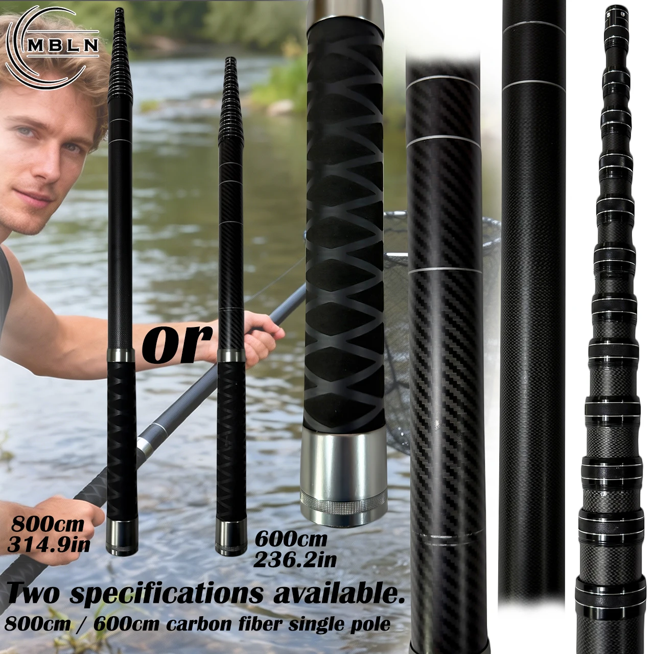 Carbon Fiber Telescopic Landing Net Pole, 6m/8m, Anti-Slip Handle, ...
