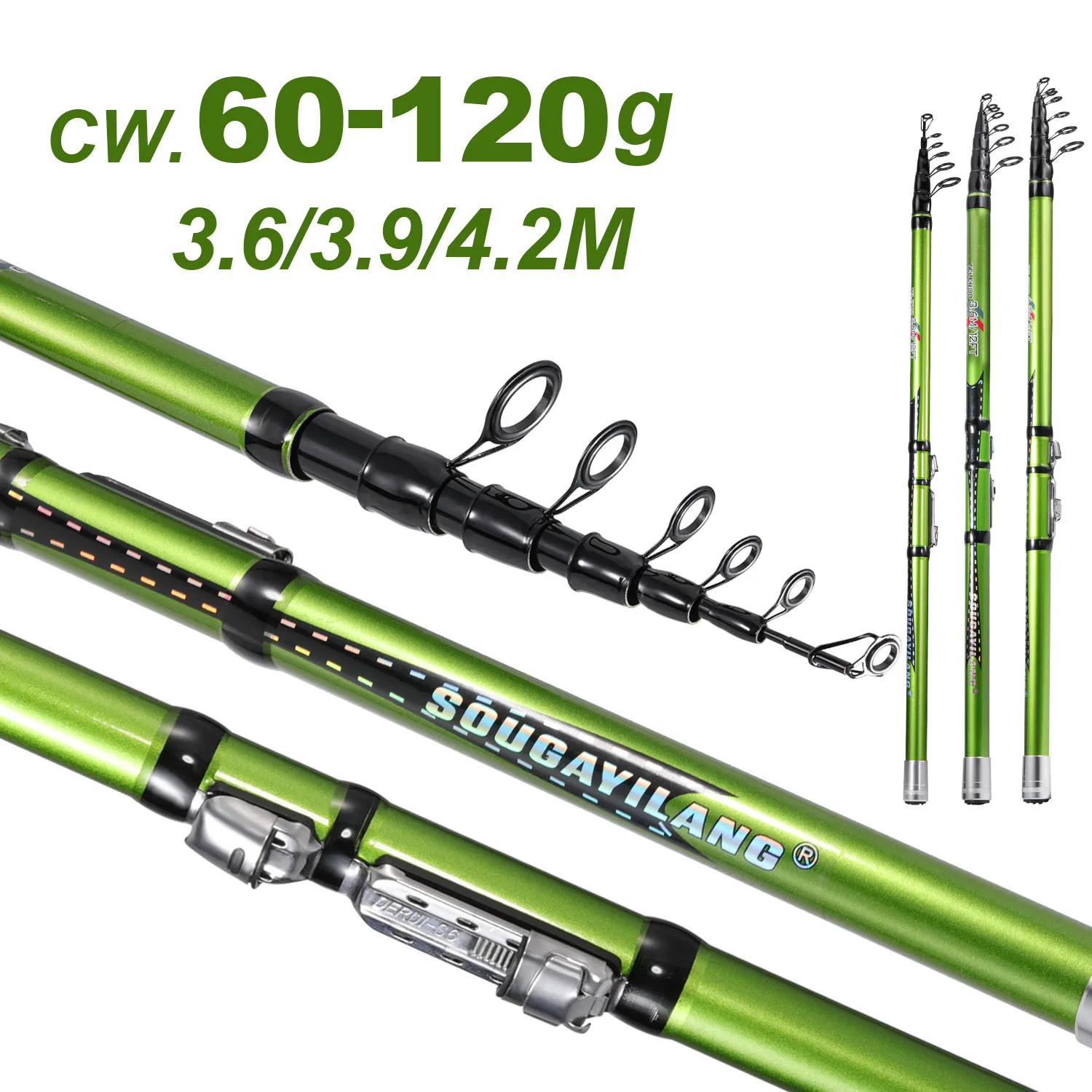 Sougayilang 3.6m 3.9m 4.2m Rock Fishing Rod Small FRP Spinning Fishing Pole Carbon Fiber Telescopic ...